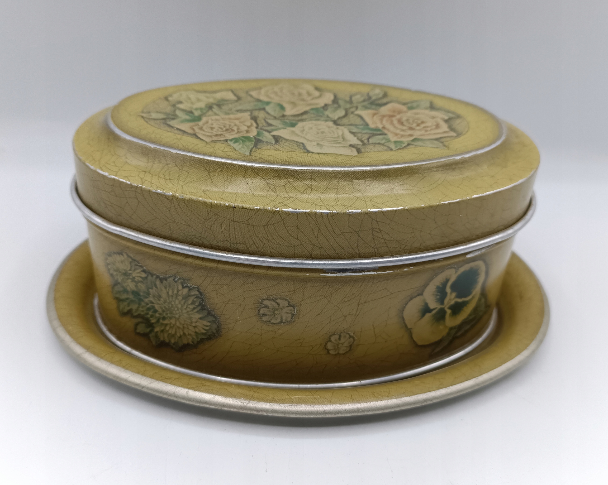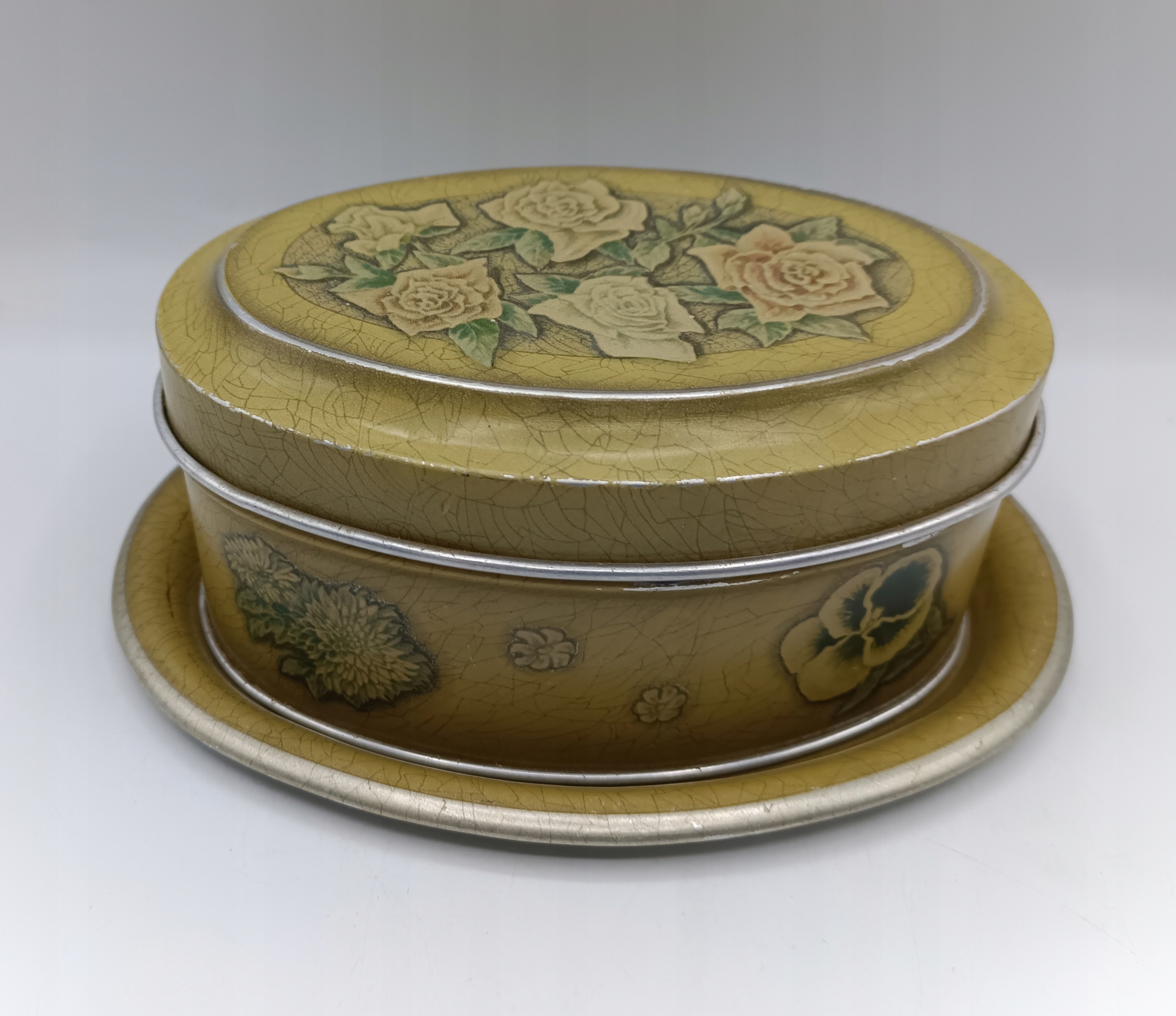 Старая алюминиевая банка с подносом - красивые розы - цветы - интересно!