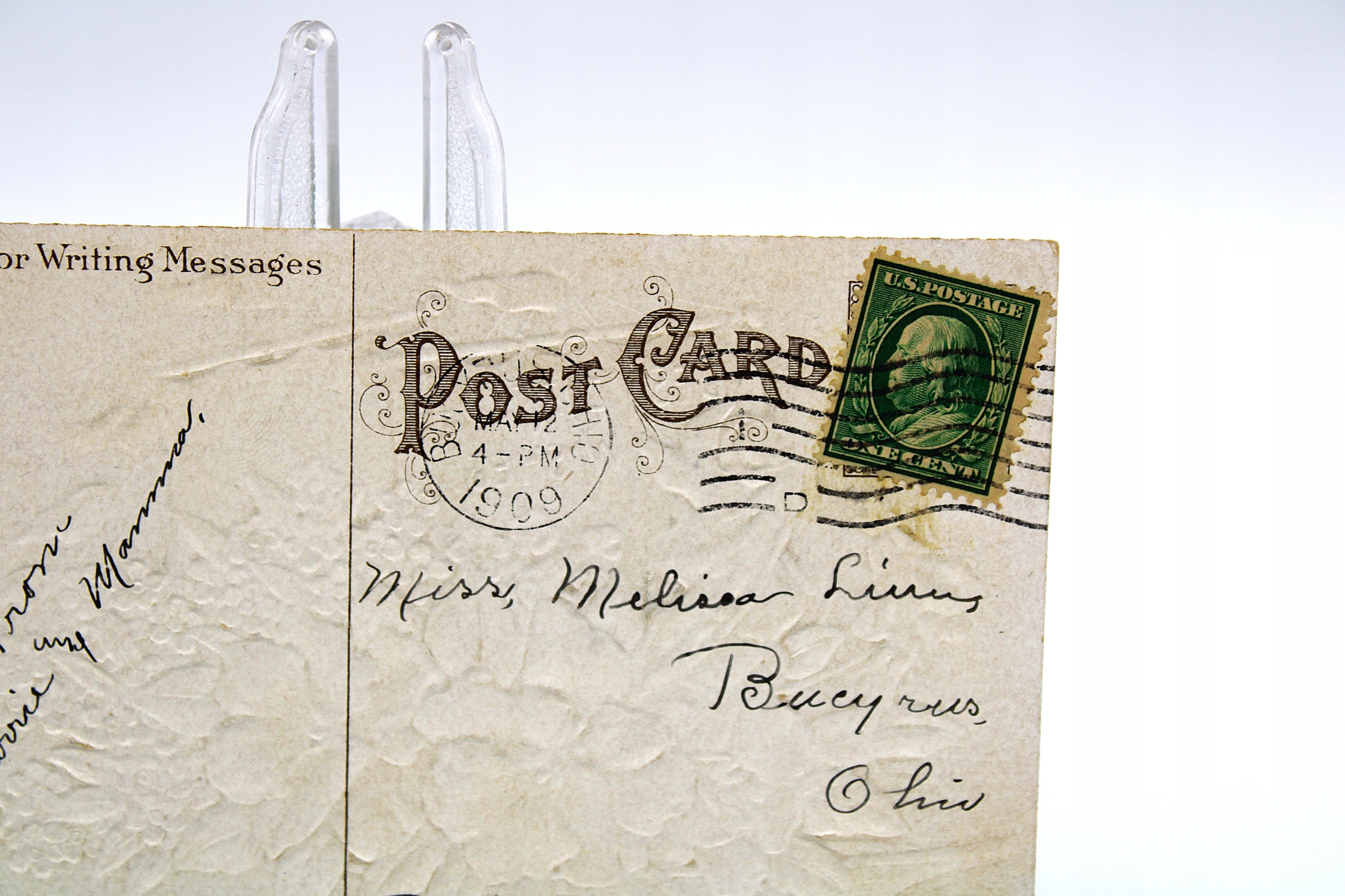 СТАРАЯ АНТИЧНАЯ ОТКРЫТКА С НАДЕЖНЫМ ДЕКОРАТИВОМ 1909 ГОДА