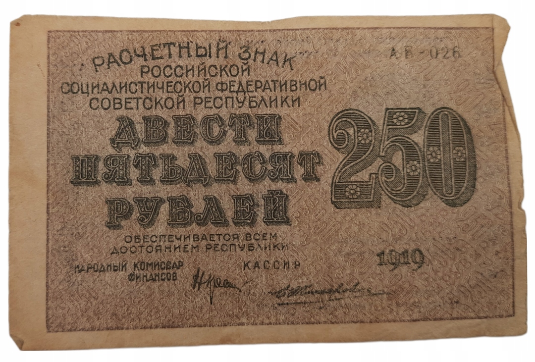 Стара банкнота Росії 250 рублів 1919 року