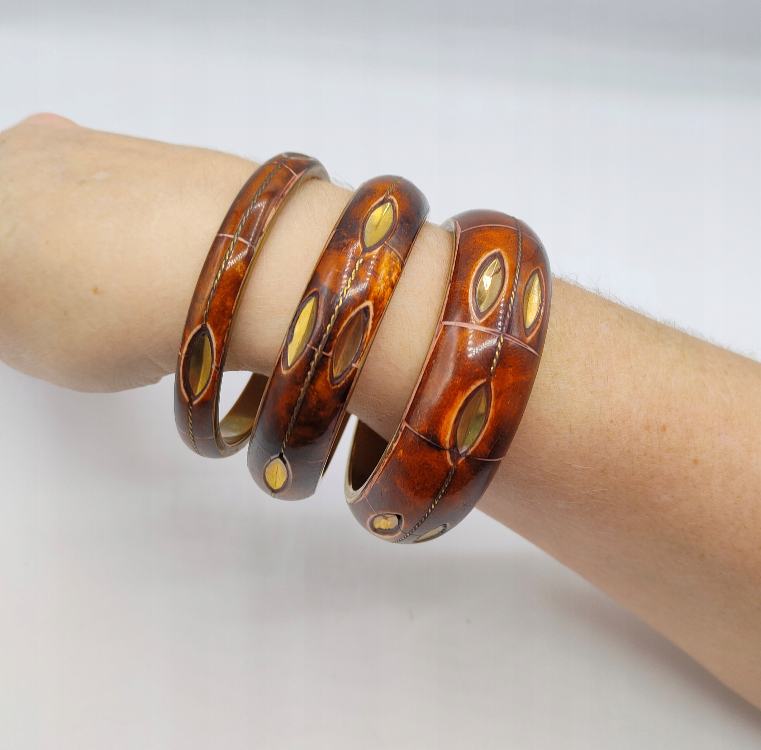 СТАРЫЙ браслет моей бабушки, латунь и кость 1 из 3 (средний)
