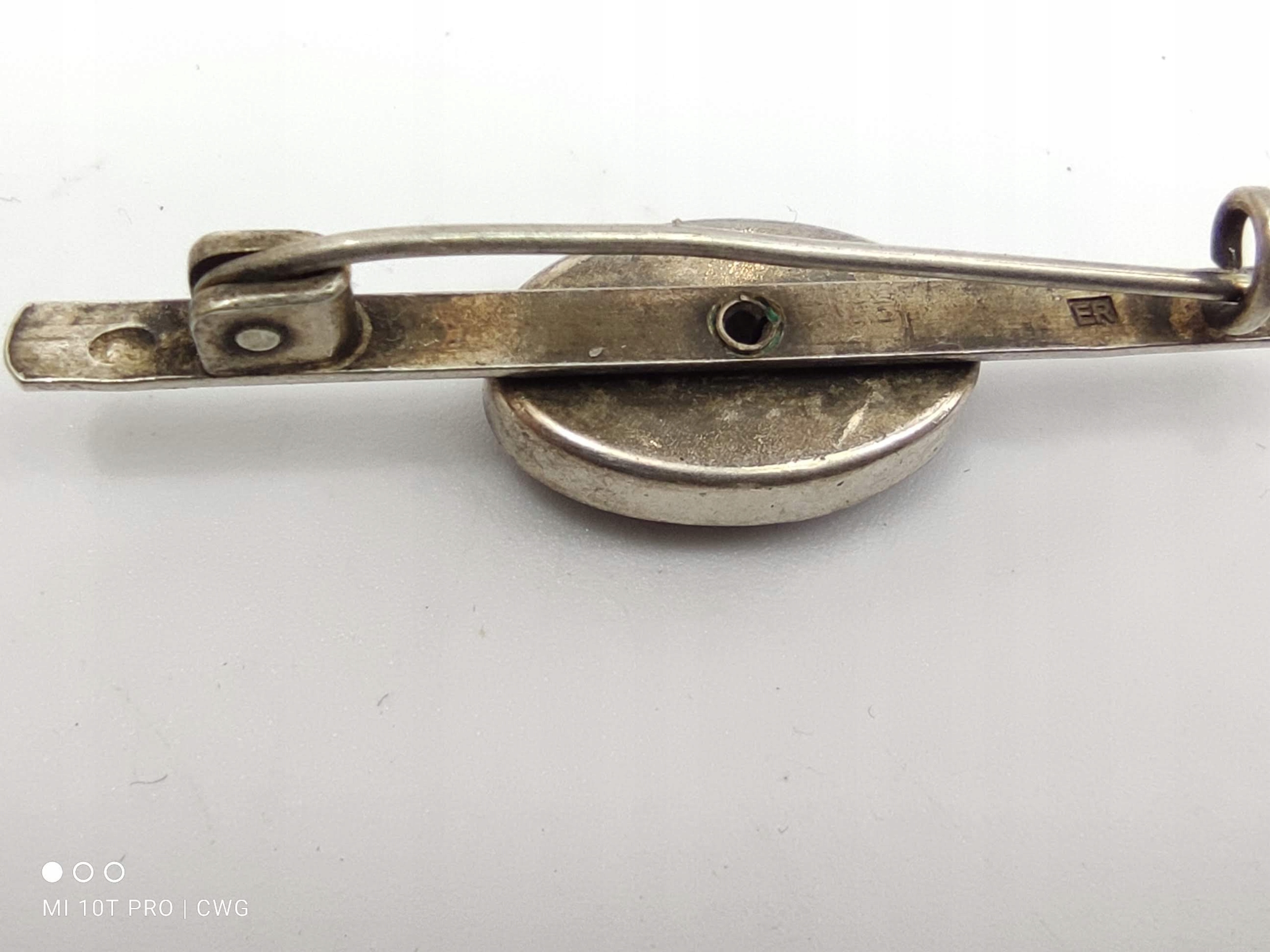 Старинная брошь с кораллом СЕРЕБРО 3, подпись ER