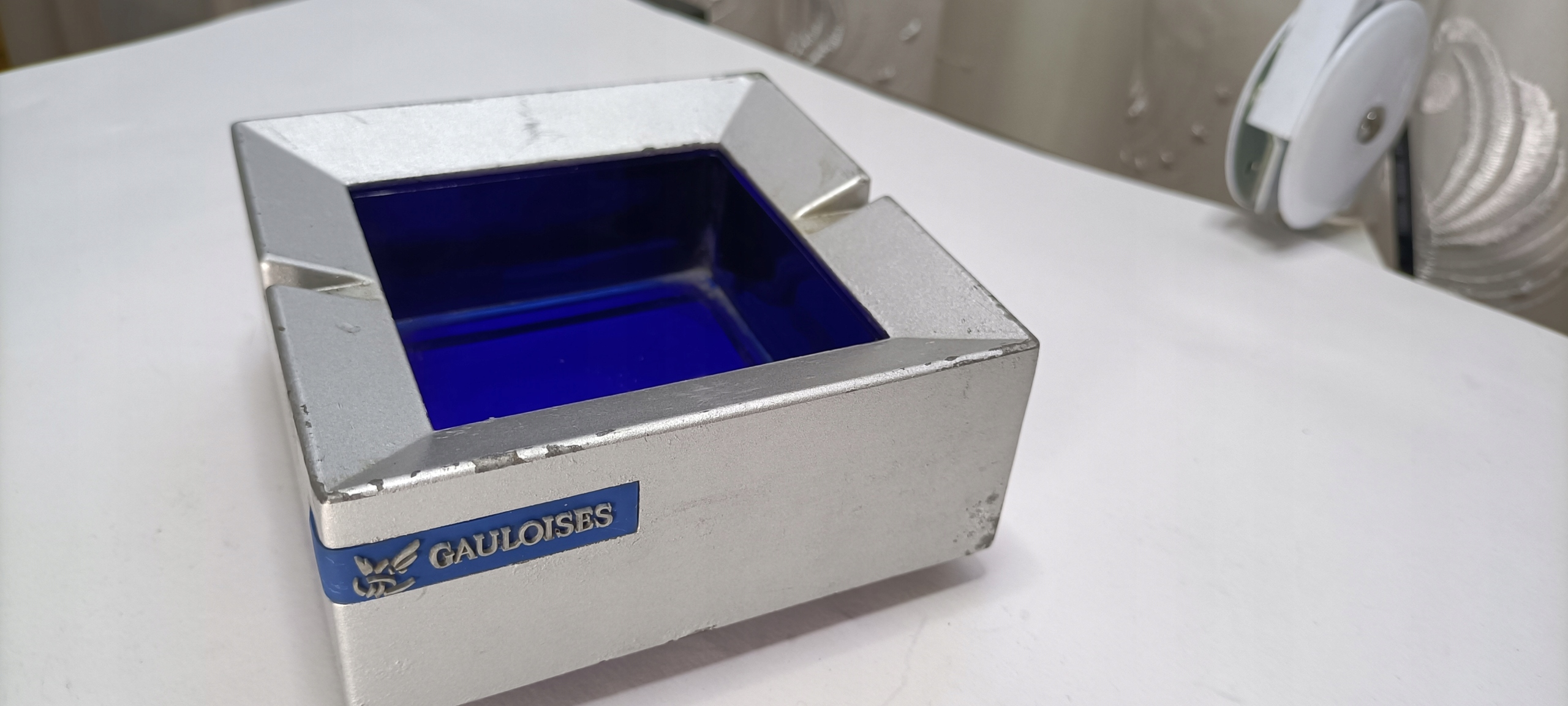 Stara designerska popielniczka Gauloises szkło kobaltowe z lat 70. (41