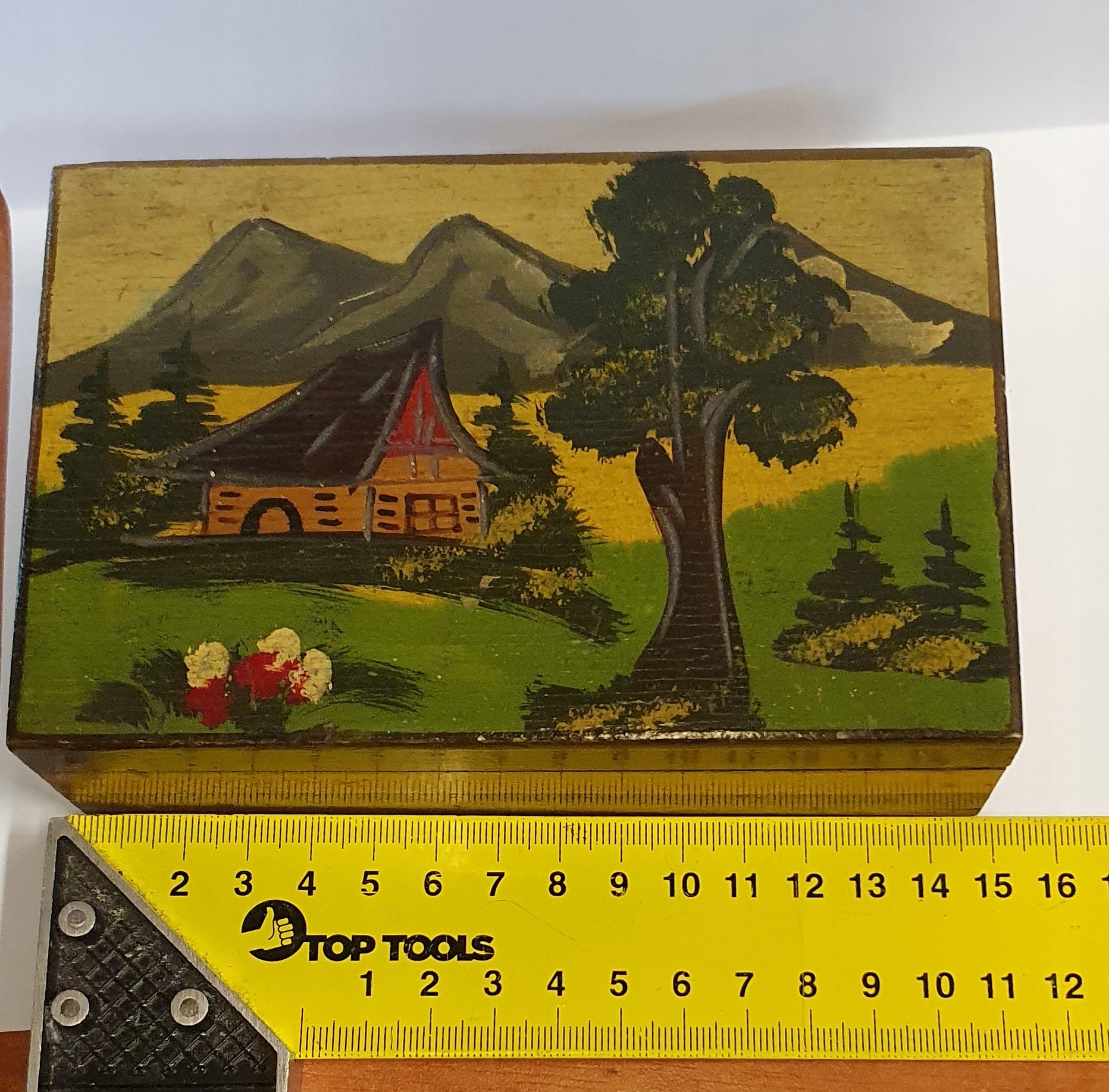 stara drewniana szkatułka skrzyneczka ręcznie malowana [238]