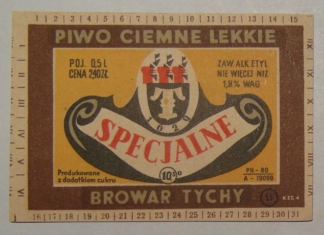 STARA ETYKIETA PIWO CIEMNE LEKKIE SPECJALNE BROWAR TYCHY