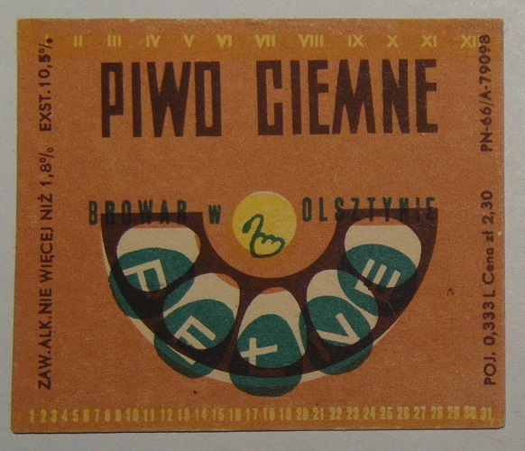 STARA ETYKIETA PIWO CIEMNE PEŁNE BROWAR OLSZTYN