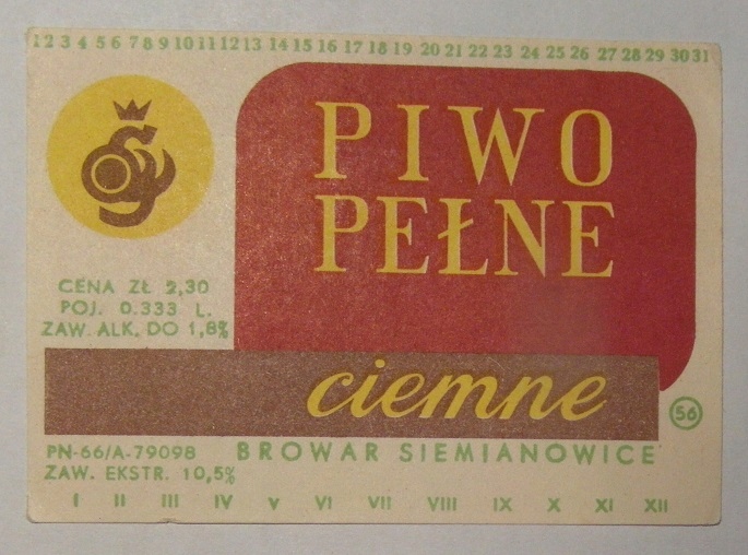 STARA ETYKIETA PIWO CIEMNE PEŁNE BROWAR SIEMIANOWICE