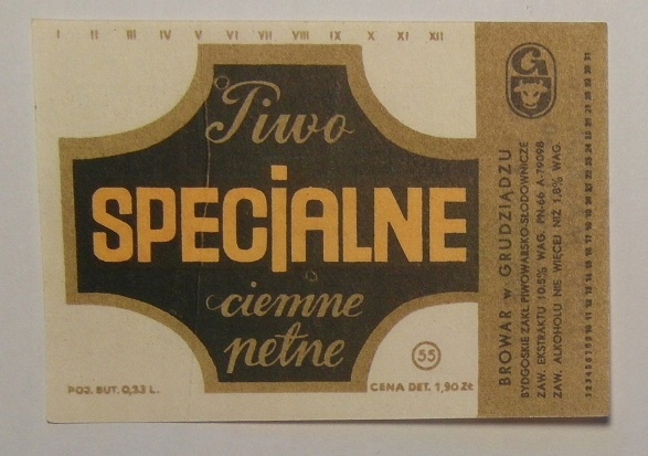 STARA ETYKIETA PIWO CIEMNE PEŁNE SPECJALNE BROWAR GRUDZIĄDZ