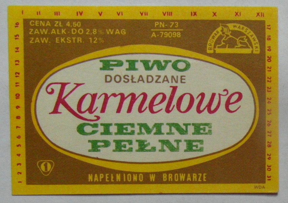 STARA ETYKIETA PIWO DOSŁADZANE KARMELOWE CIEMNE PEŁNE BROWAR WARSZAWA