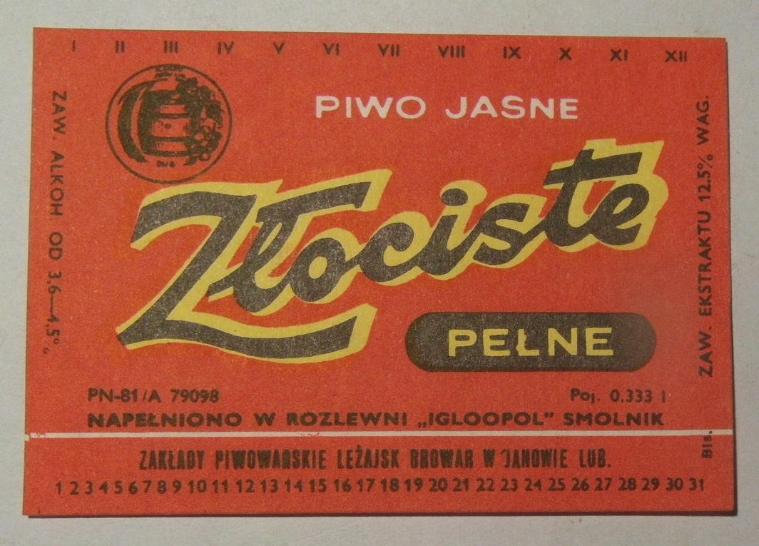 STARA ETYKIETA PIWO JASNE BROWAR JANÓW LUBELSKI ROZLEWNIA IGLOOPOL SMOLNIK
