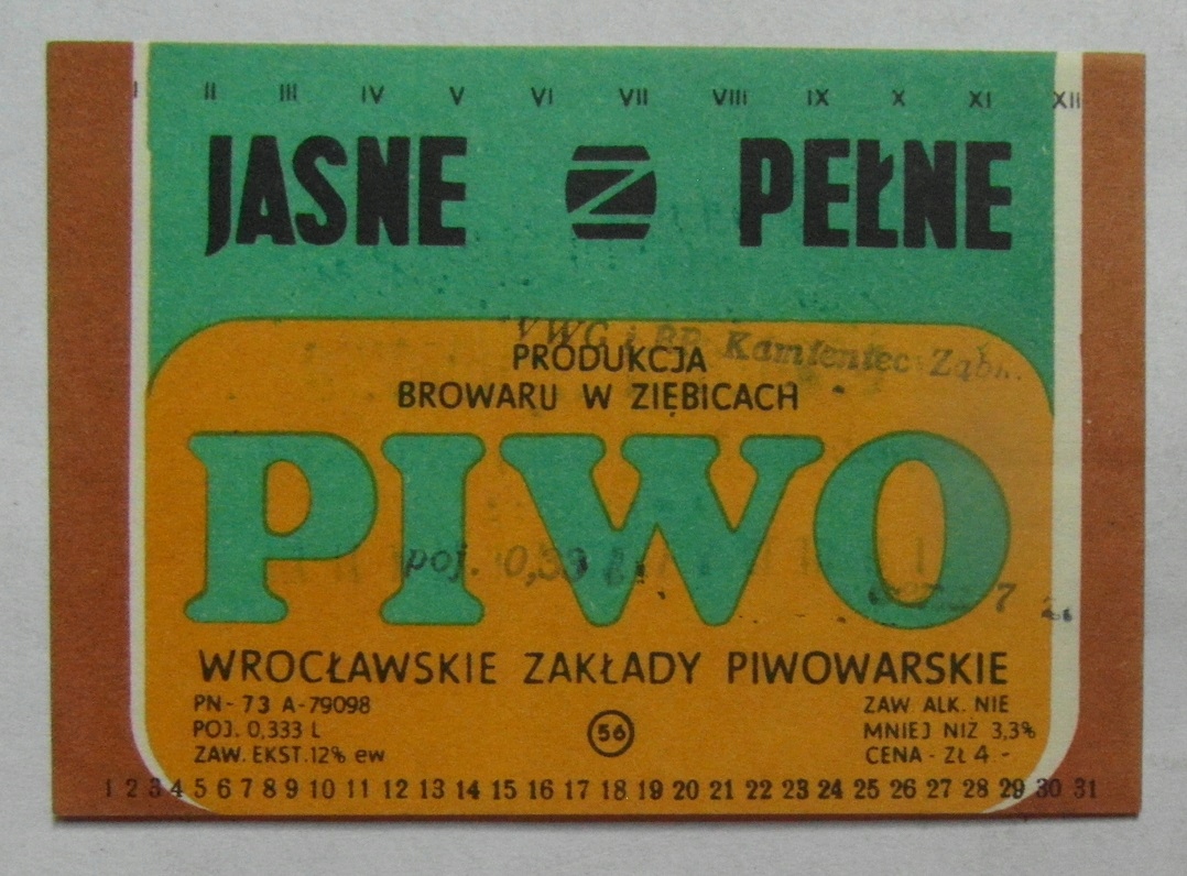 STARA ETYKIETA PIWO JASNE BROWAR ZIĘBICE ORANŻADA GS KAMIENIEC ZĄBKOWICKI