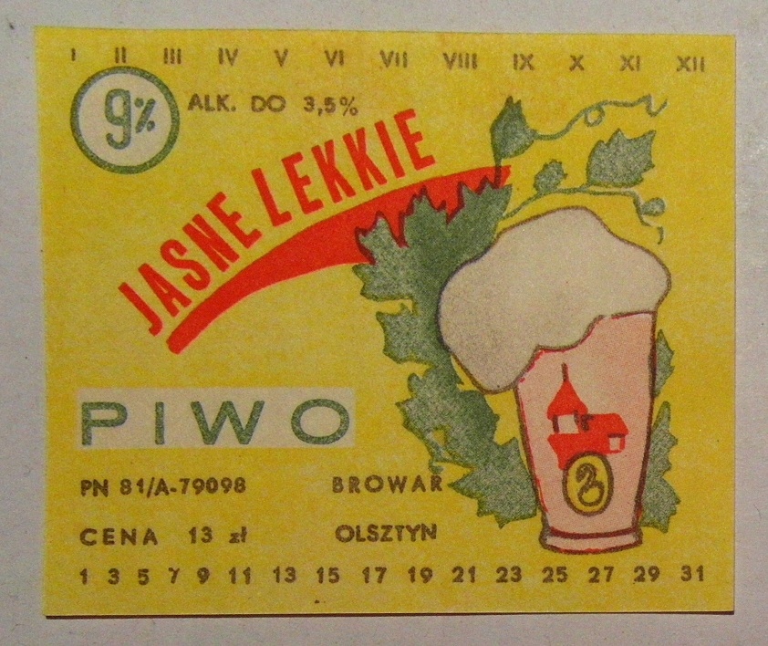 STARA ETYKIETA PIWO JASNE LEKKIE BROWAR OLSZTYN