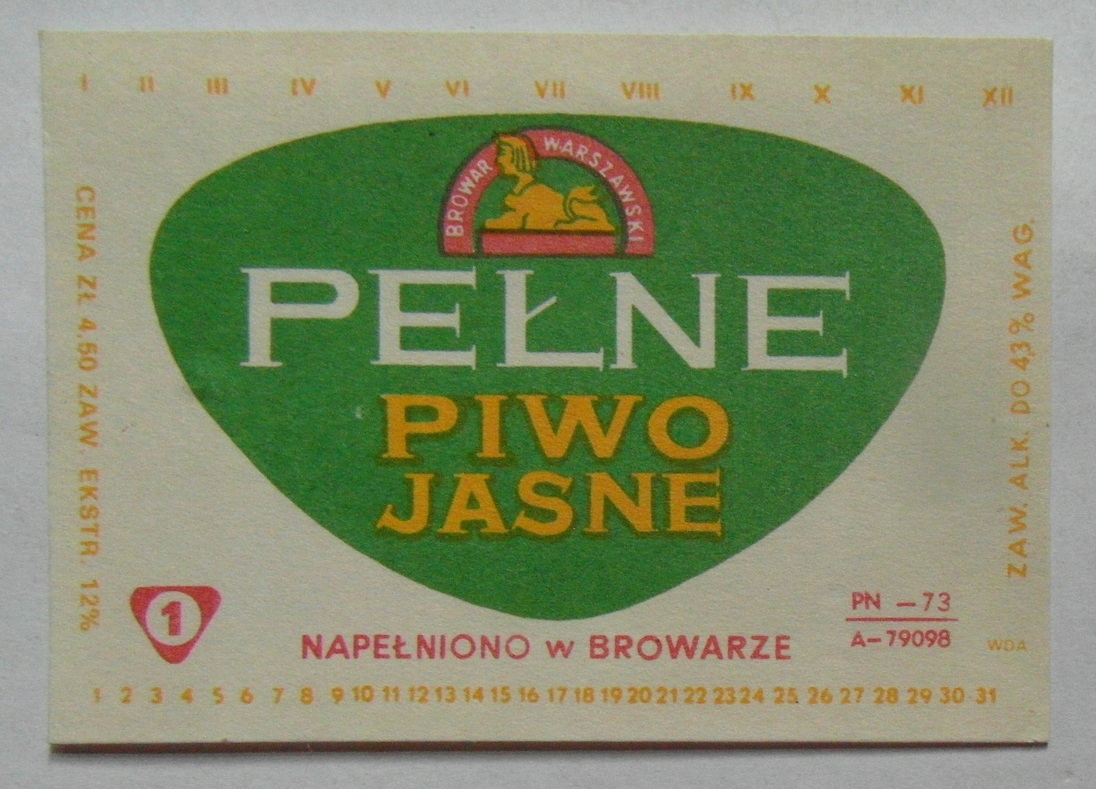 STARA ETYKIETA PIWO JASNE PEŁNE BROWAR WARSZAWA