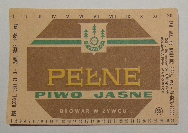 STARA ETYKIETA PIWO JASNE PEŁNE BROWAR ŻYWIEC ROZLEWNIA GS WADOWICE