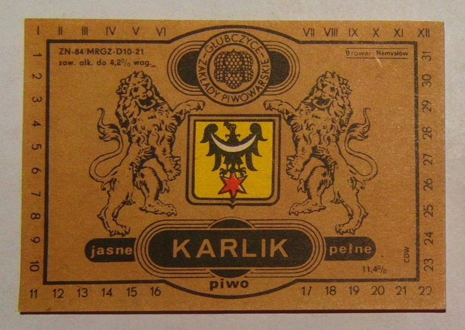 STARA ETYKIETA PIWO JASNE PEŁNE KARLIK BROWAR NAMYSŁÓW