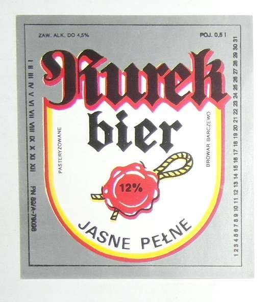 STARA ETYKIETA PIWO JASNE PEŁNE KUREK BIER BROWAR BARCZEWO