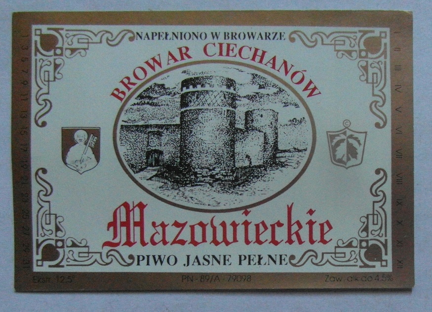 STARA ETYKIETA PIWO JASNE PEŁNE MAZOWIECKIE BROWAR CIECHANÓW
