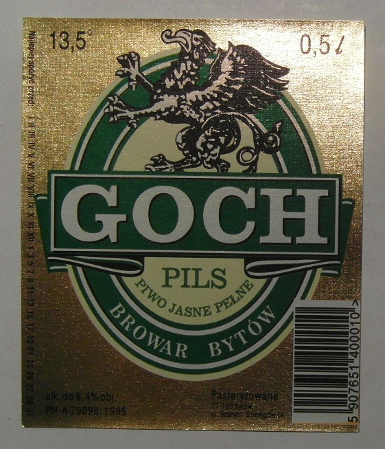 STARA ETYKIETA PIWO JASNE PEŁNE PILS BROWAR GOCH BYTÓW