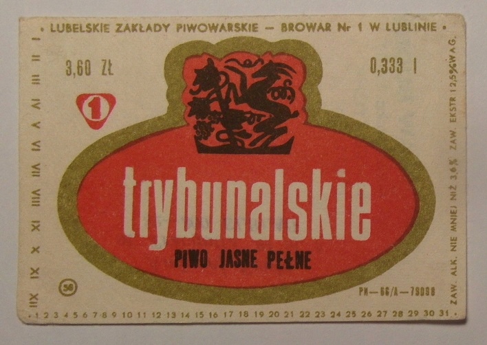 STARA ETYKIETA PIWO JASNE PEŁNE TRYBUNALSKIE BROWAR NR 1 LUBLIN