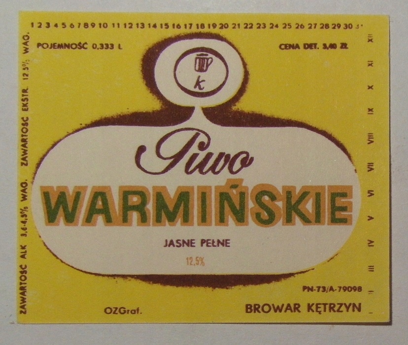 STARA ETYKIETA PIWO JASNE PEŁNE WARMIŃSKIE BROWAR KĘTRZYN