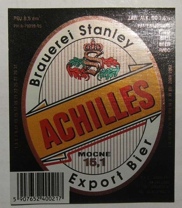 STARA ETYKIETA PIWO MOCNE ACHILLES BROWAR STANLEY CHOJNÓW