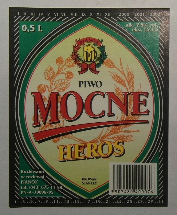 STARA ETYKIETA PIWO MOCNE BROWAR STANLEY CHOJNÓW ROZLEWNIA PIANOX KOPYŚĆ
