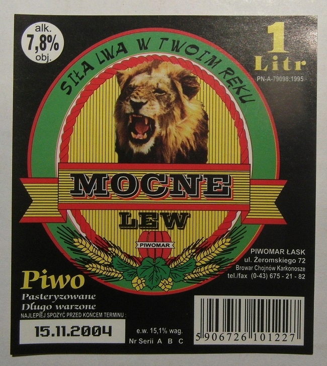 STARA ETYKIETA PIWO MOCNE LEW BROWAR CHOJNÓW ROZLEWNIA PIWOMAR ŁASK