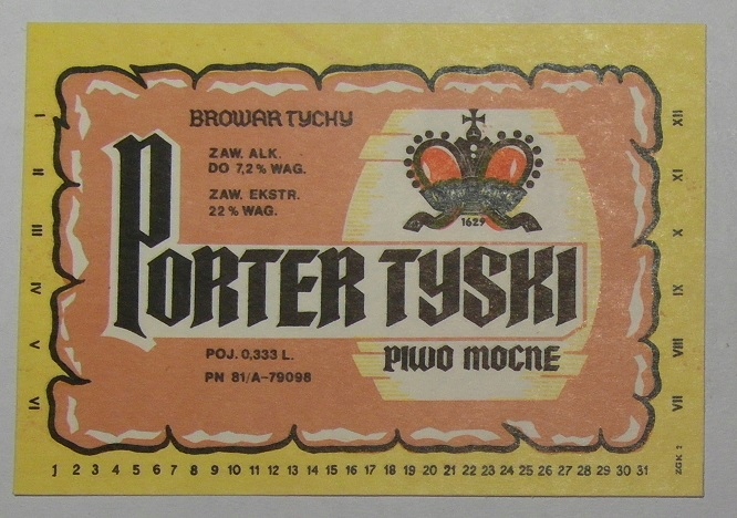 STARA ETYKIETA PIWO MOCNE PORTER TYSKI BROWAR TYCHY