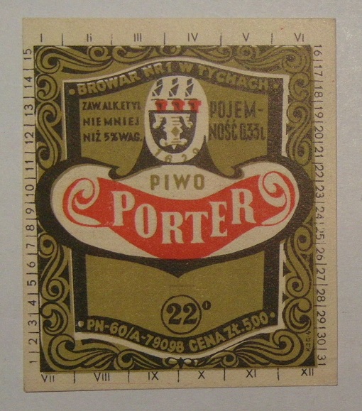 STARA ETYKIETA PIWO PORTER BROWAR TYCHY