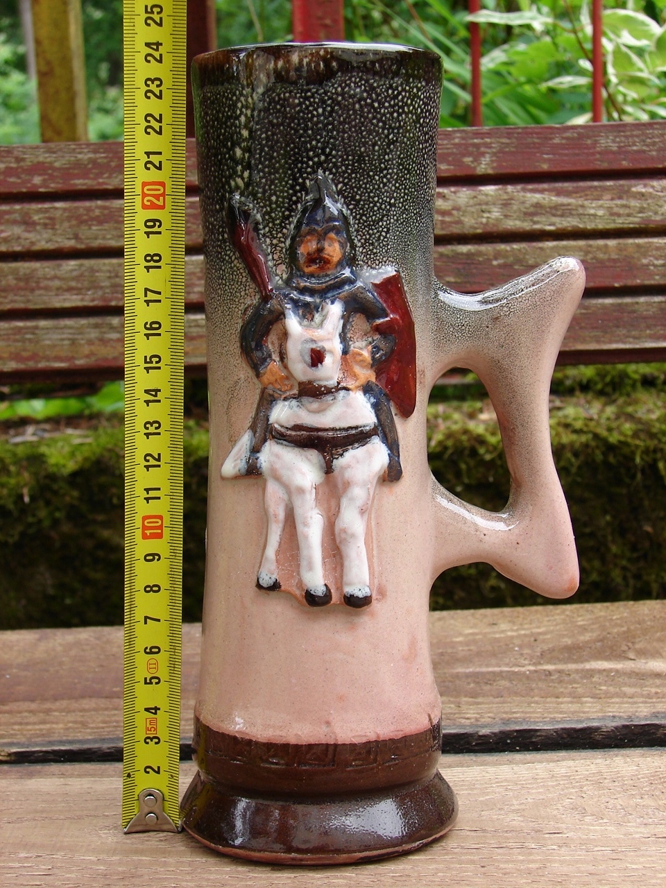Старая керамическая кружка, украшенная рыцарями польской народной республики