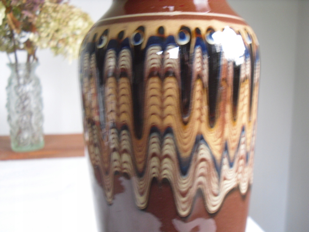 Старая керамическая ваза с павлиньим глазом Болгария 1970-е годы Болгарская ваза для цветов