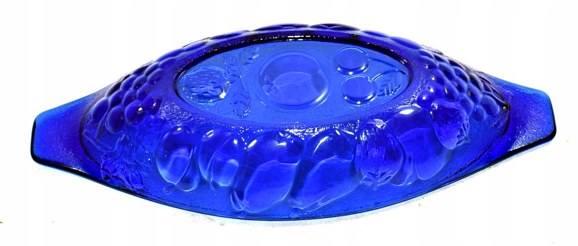 Предмет аукциона – красивая толстостенная тарелка. Кобальтовое стекло, тонированное в массе, с красивой рельефной чашей - стекло 1960-1970-х годов.