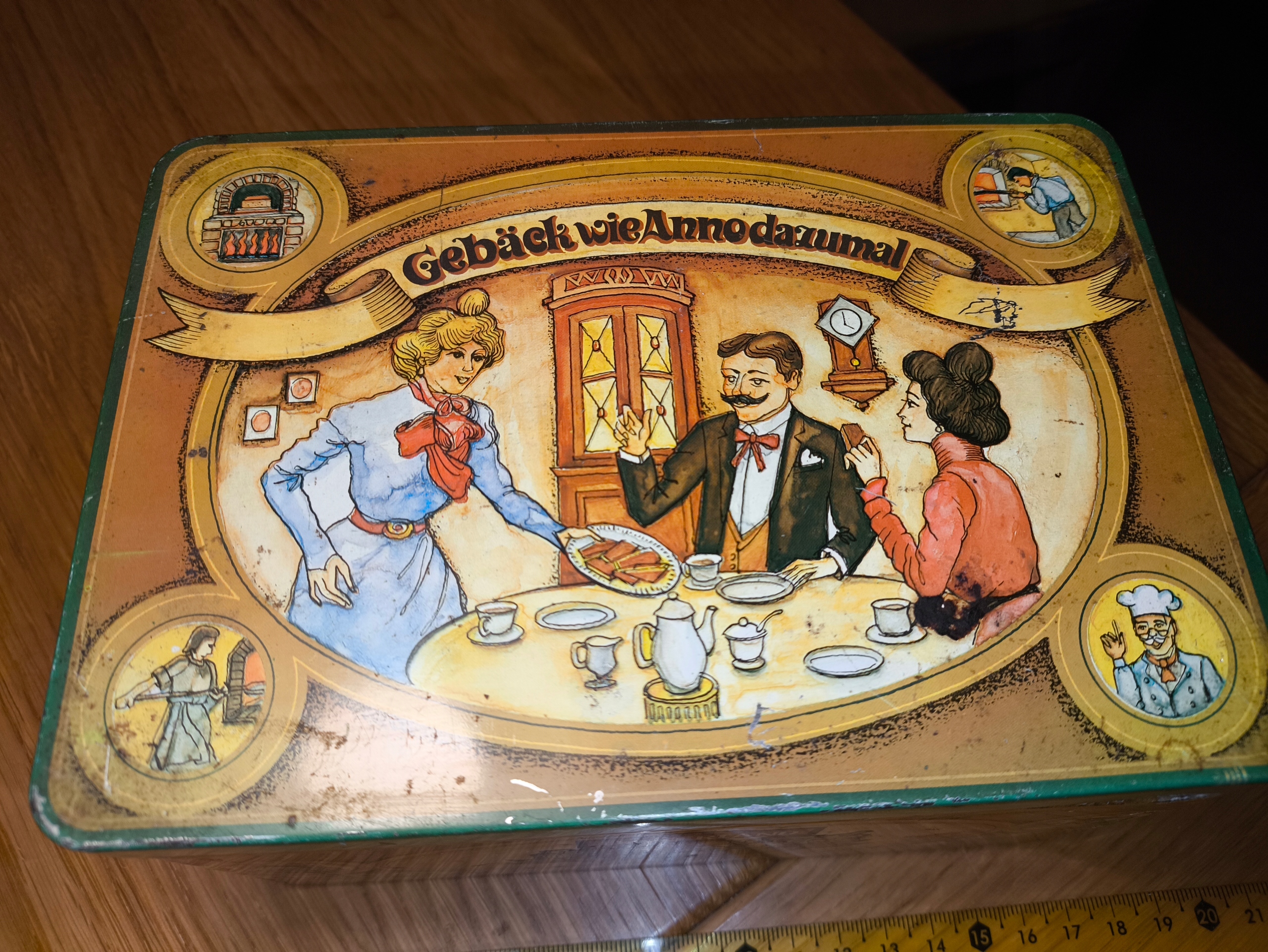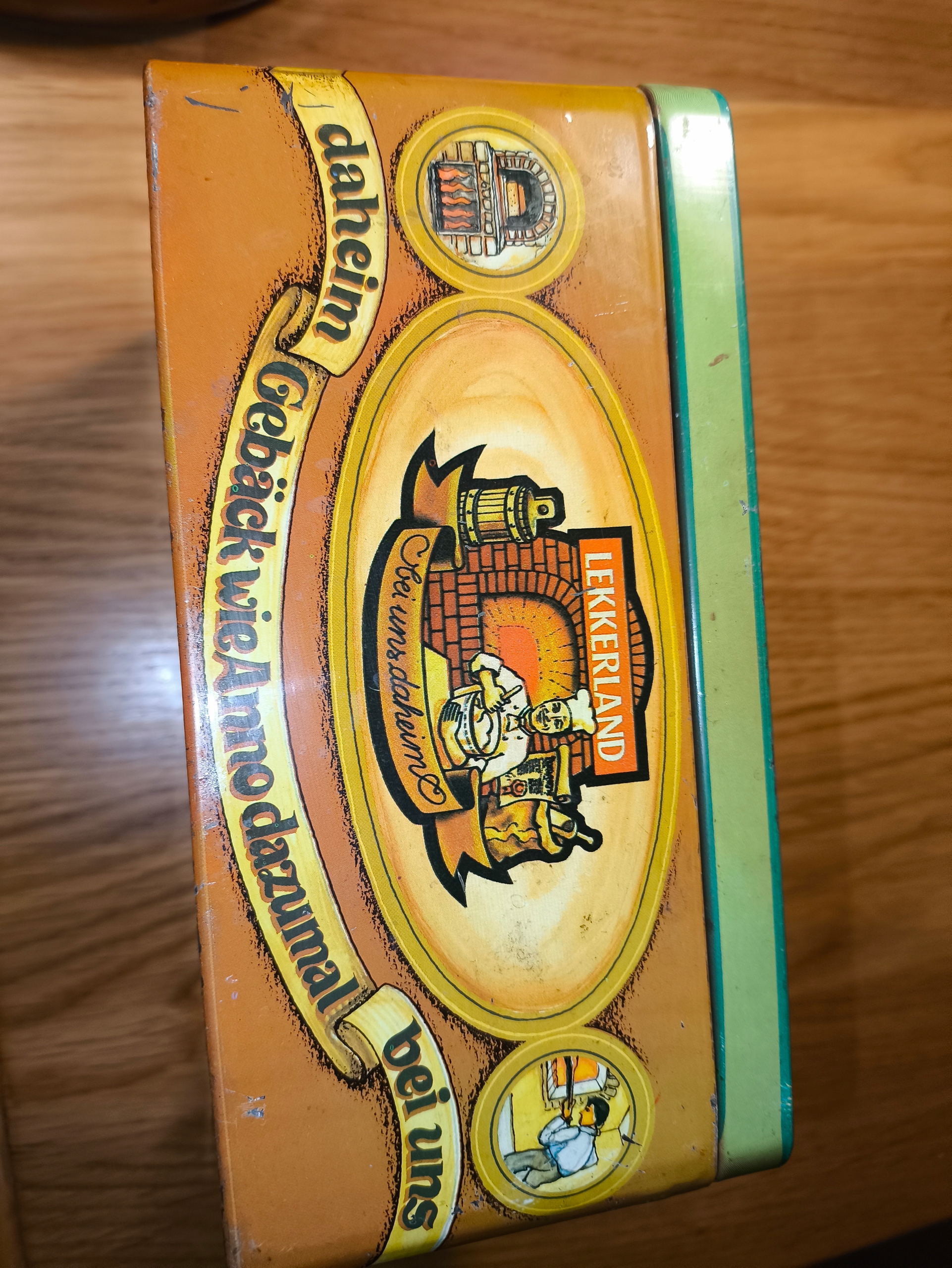 This box is a metal can after luxurious cookies from the German company LEKKERLAN Content-it was a 300-grammable mix of high-quality baking, including: