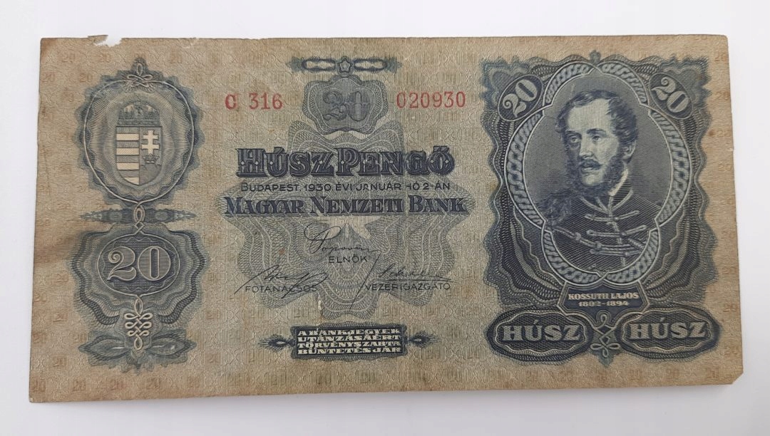 Стара колекційна банкнота 20 Pengo 1930 Угорщина
