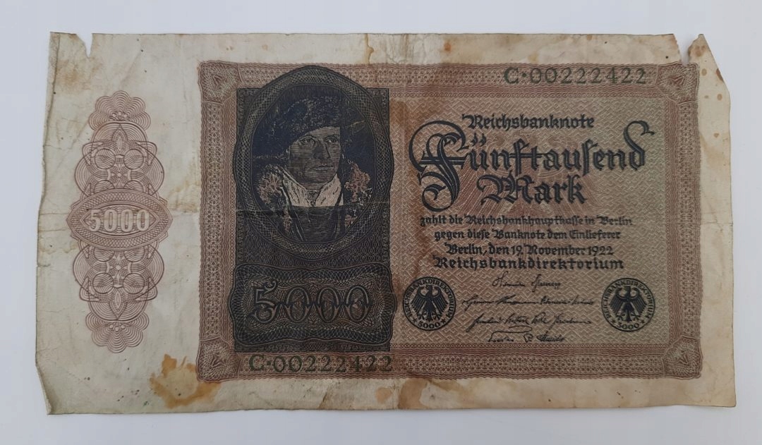 Стара колекційна банкнота Німеччина 5000 марок 1922 року