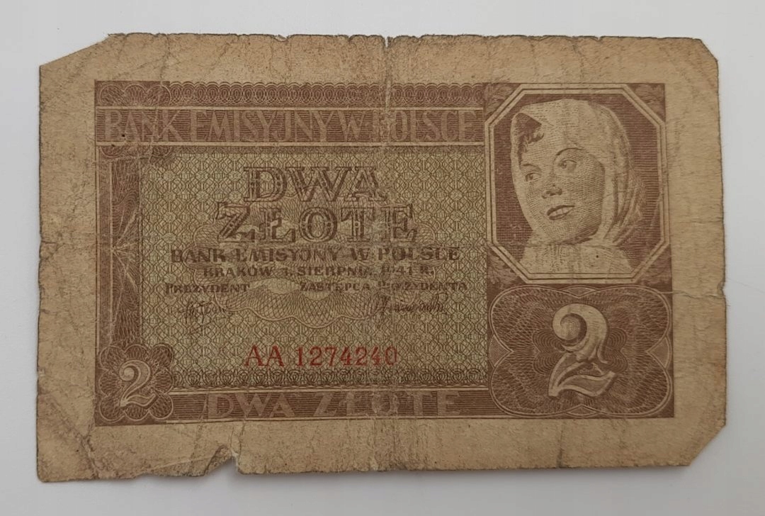 Стара колекційна банкнота Польща 2 злотих 1941 р