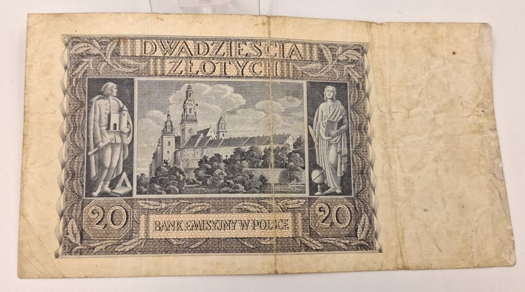 Старая коллекционная банкнота Польша 20 злотых 1940 года.