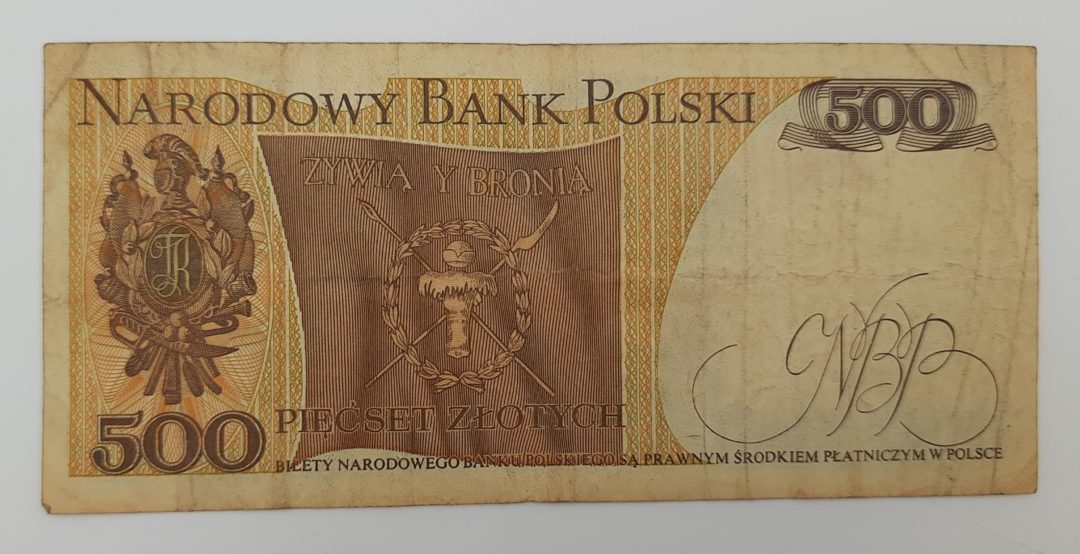 Стара колекційна банкнота Польща 500 злотих 1982 р