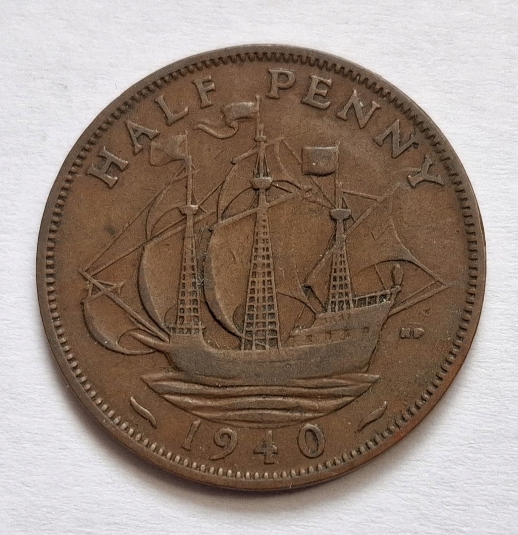 Старая коллекционная монета полпенни пенни 1940 года, Великобритания.