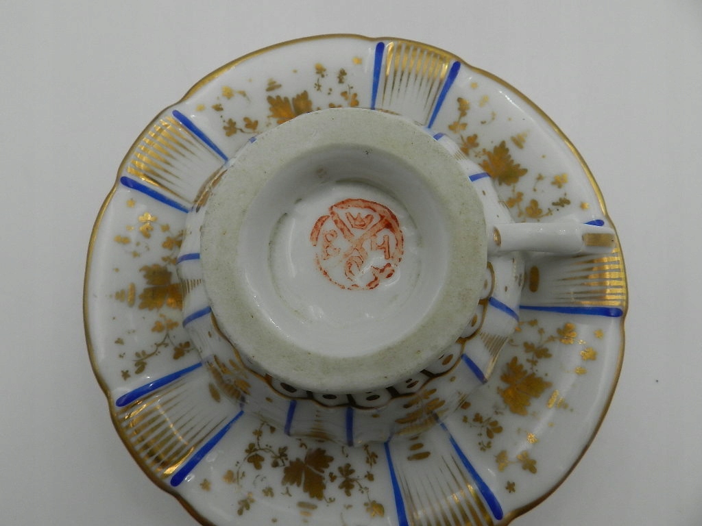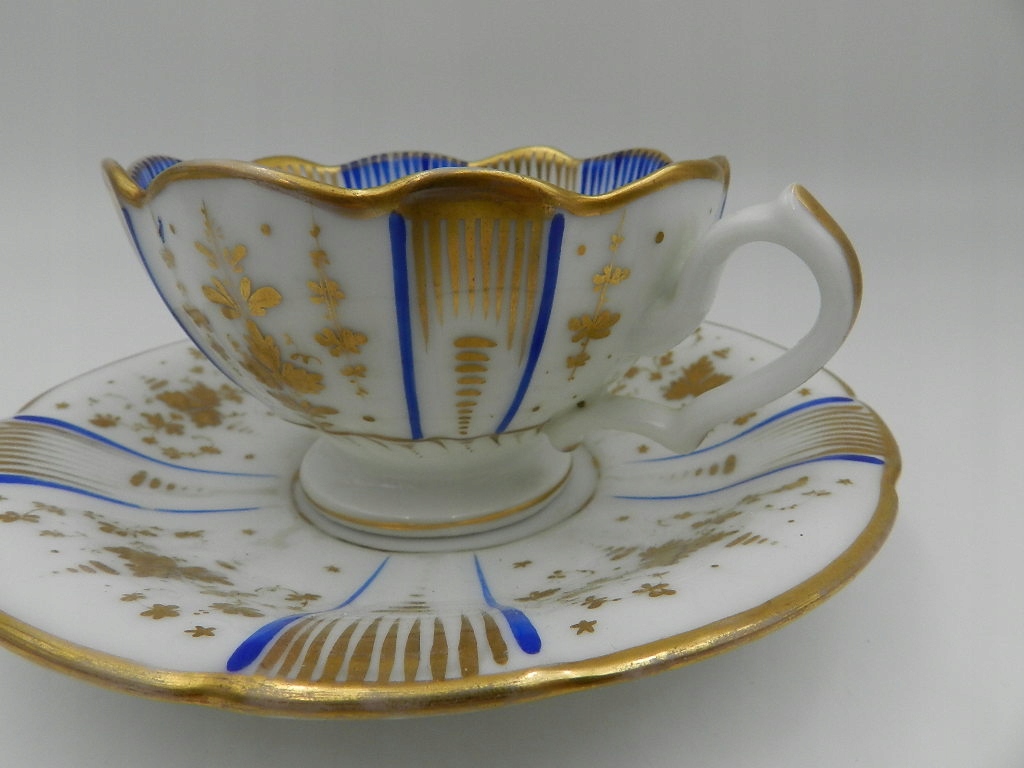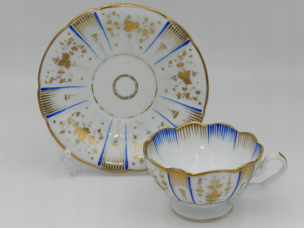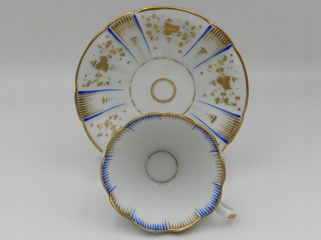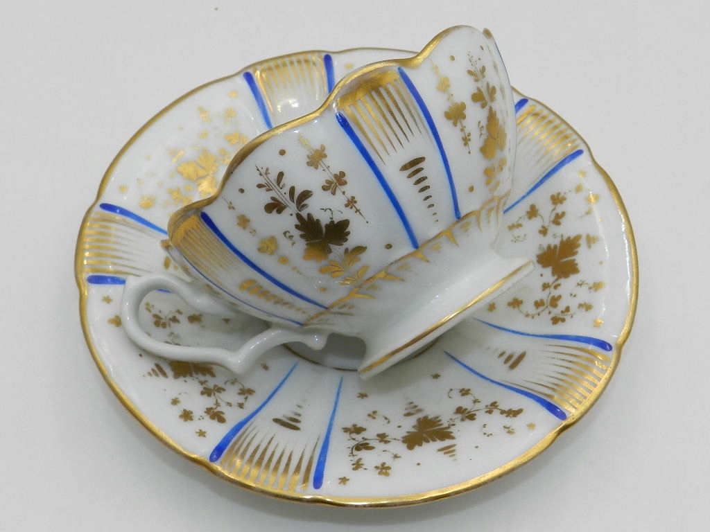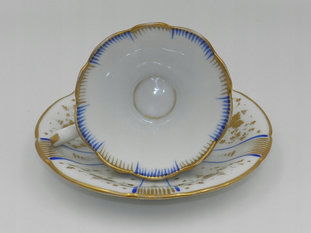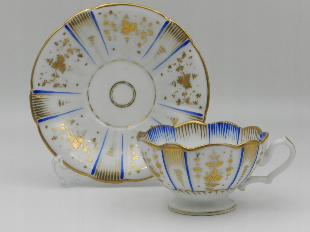 Изысканно украшен кобальтовыми и позолоченными узорами и растительными композициями.