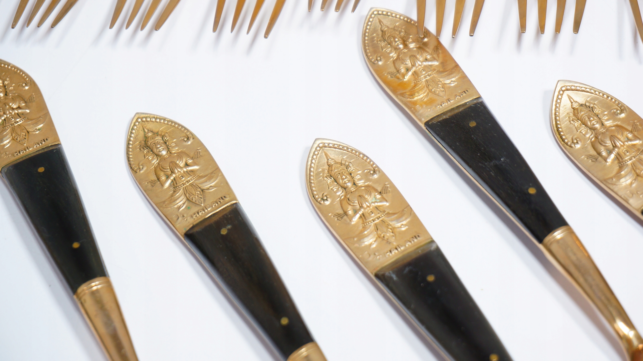 Старый латунный латун + деревянные столовые приборы Тайский Будда 60 Элементы