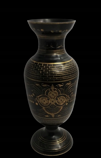 Стара латунна висока ваза, гравірована латунь, емальована, 29 см