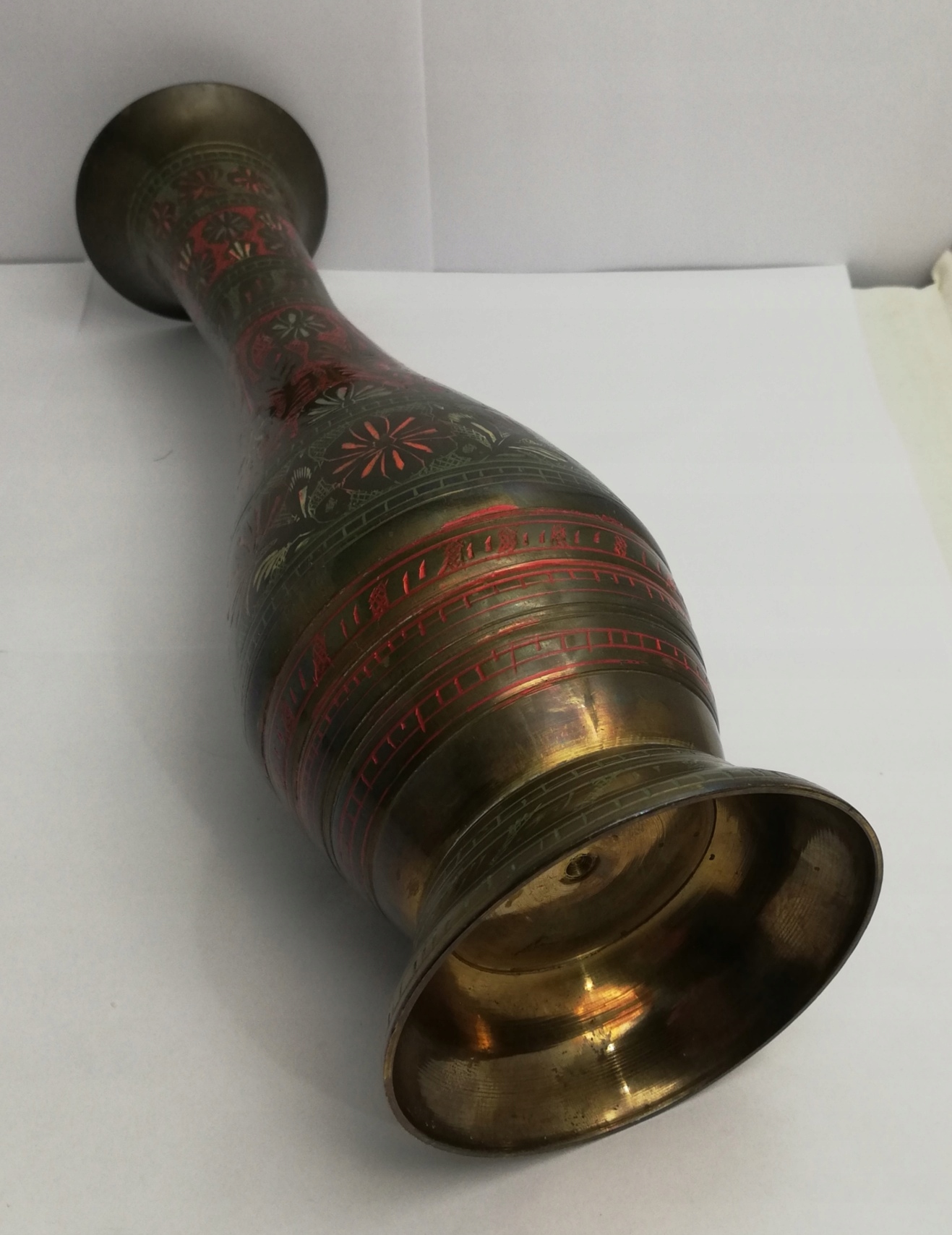 Стара латунна висока ваза, латунь, гравірована, емальована, індійська, 34 см