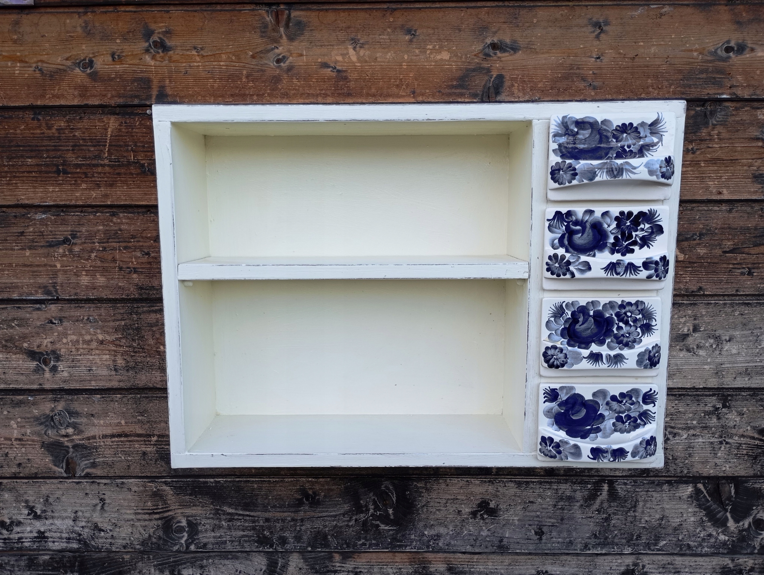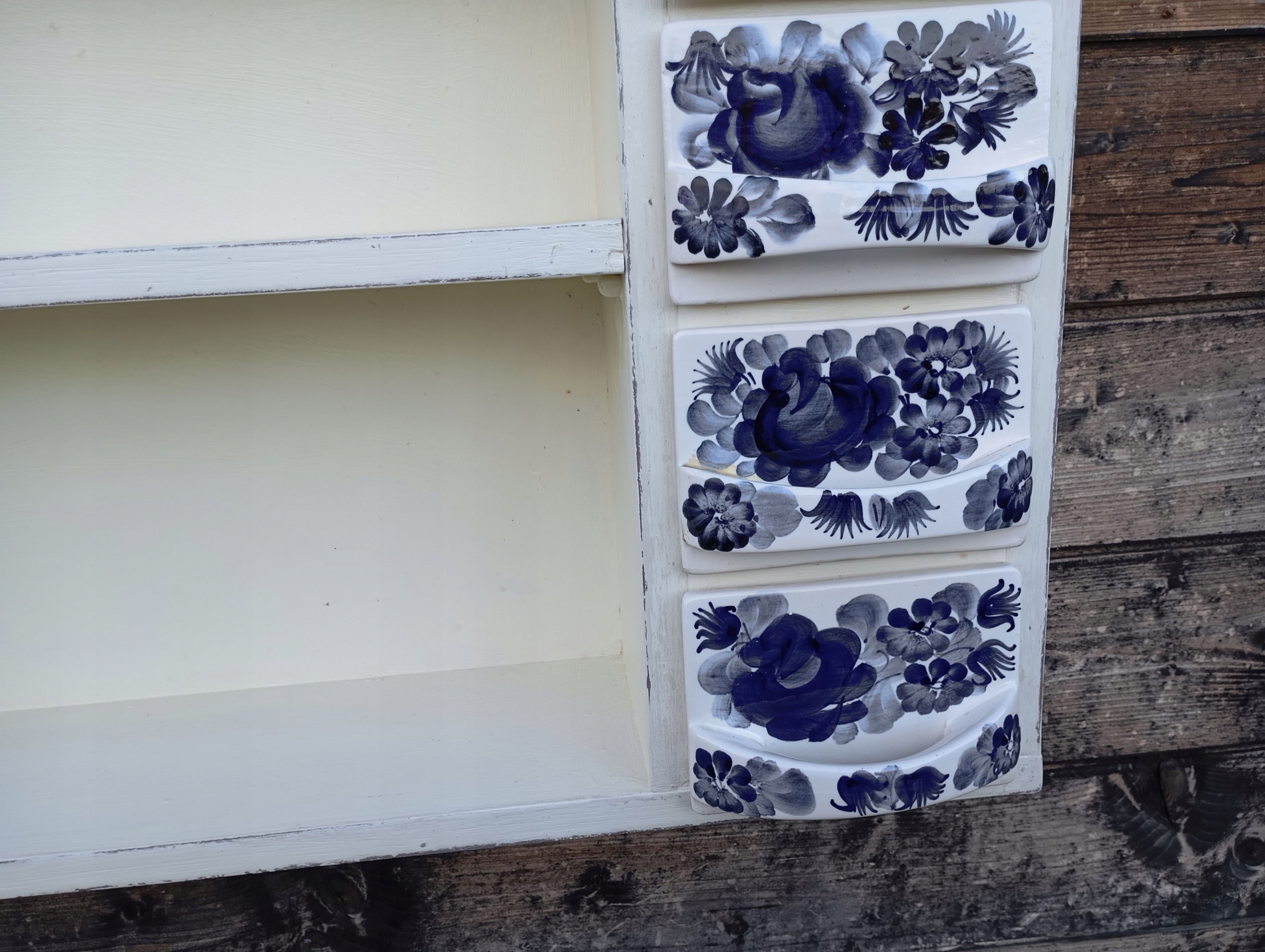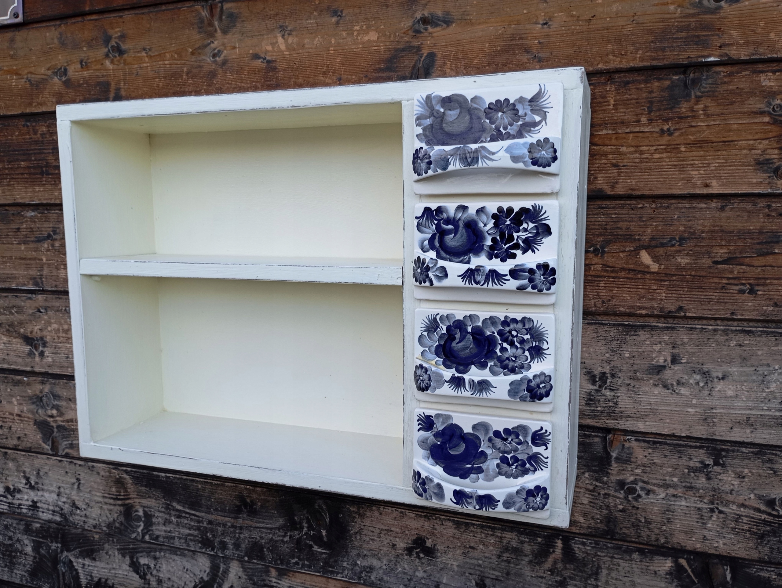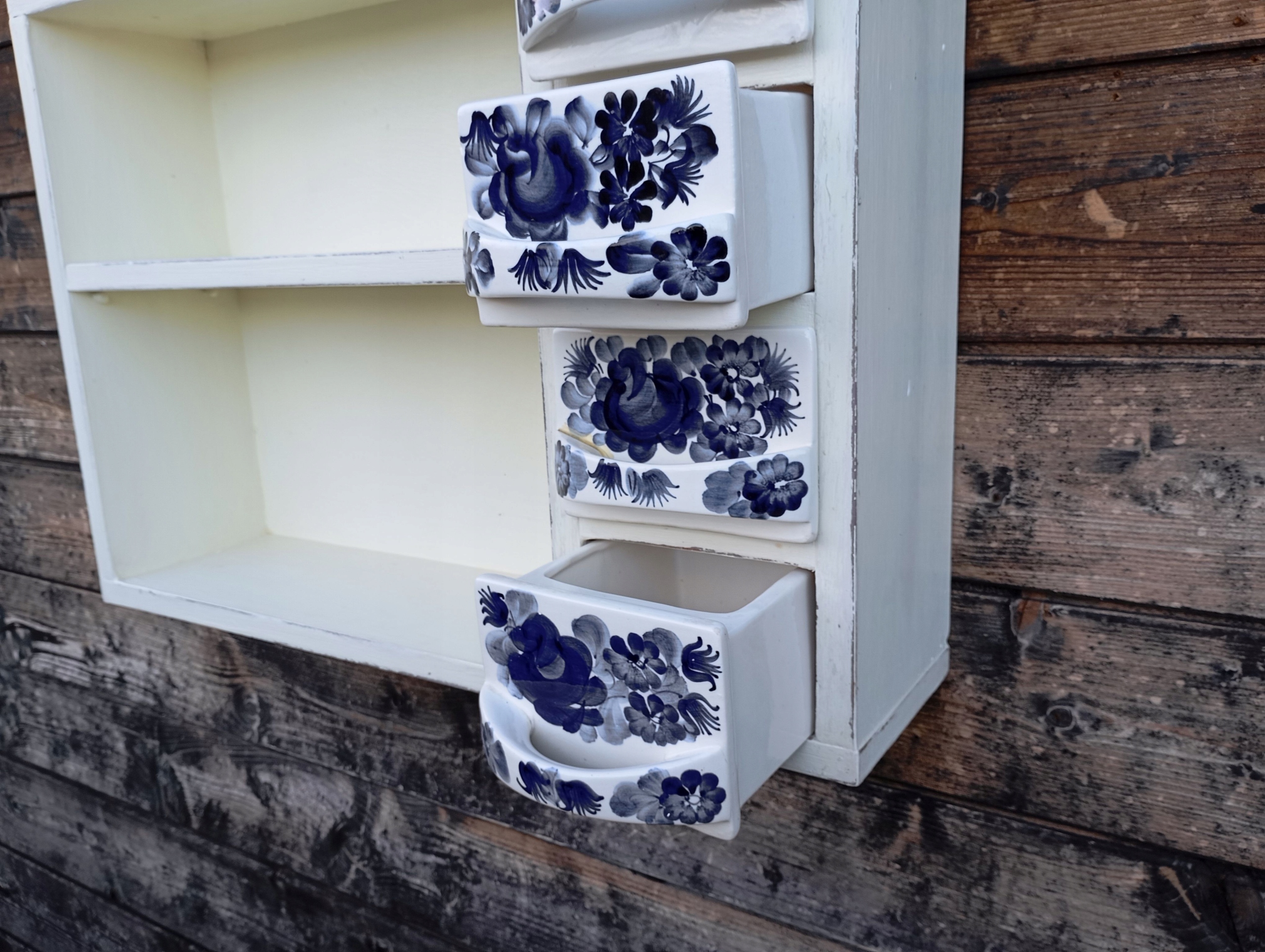 STARA MALOWANA PÓŁKA SZAFKA Z CERAMICZNYMI SZUFLADKAMI WŁOCŁAWEK