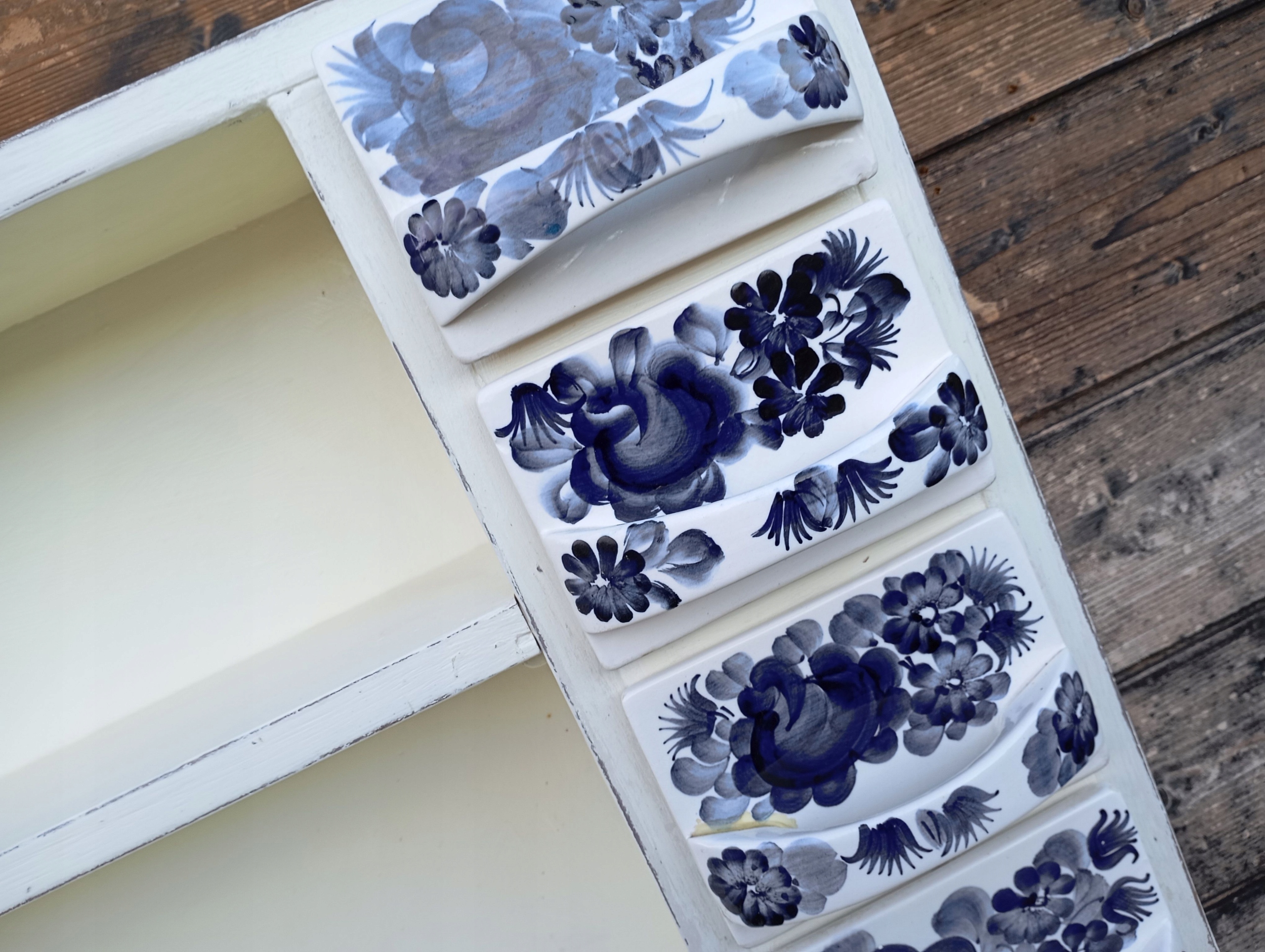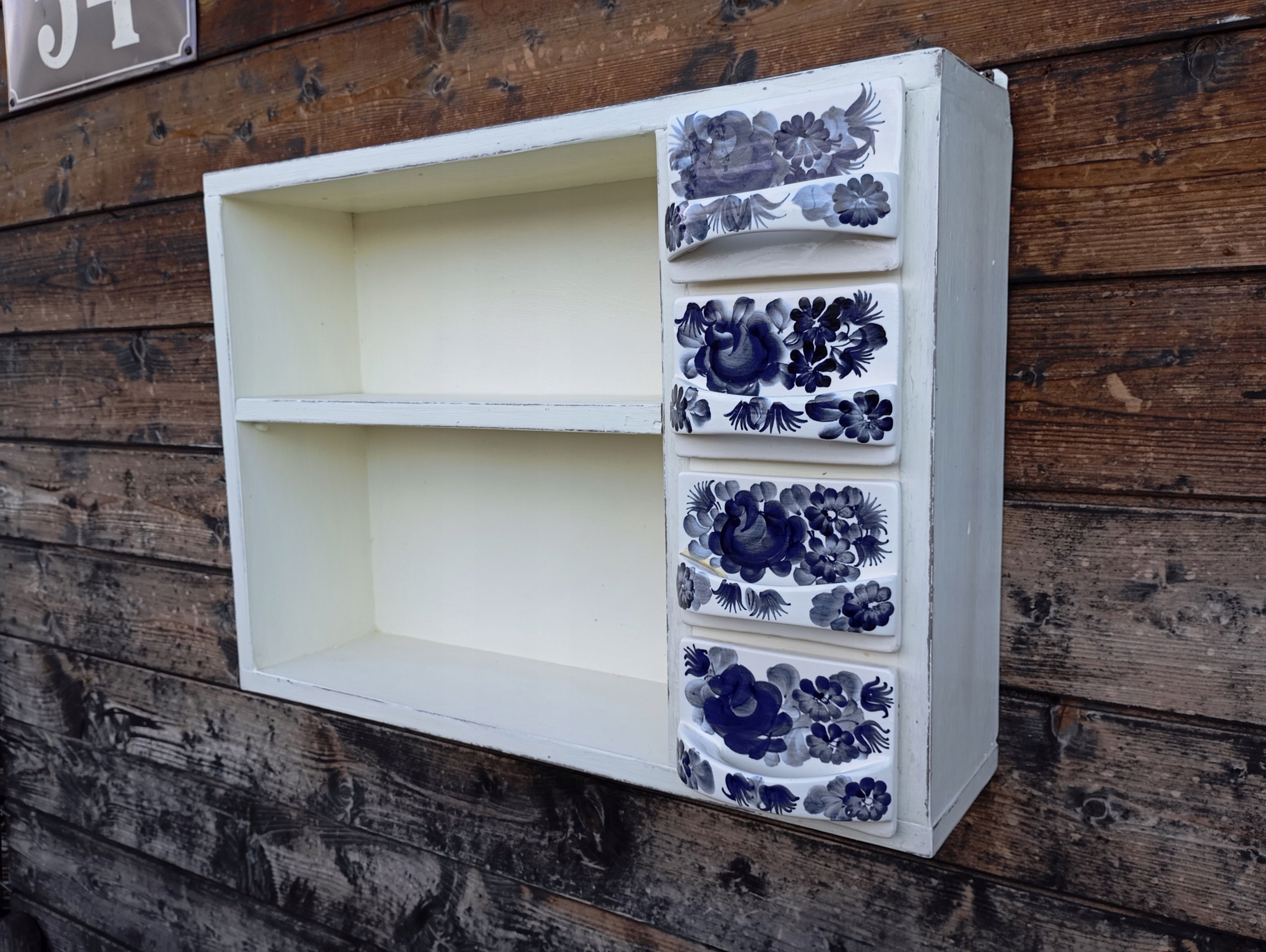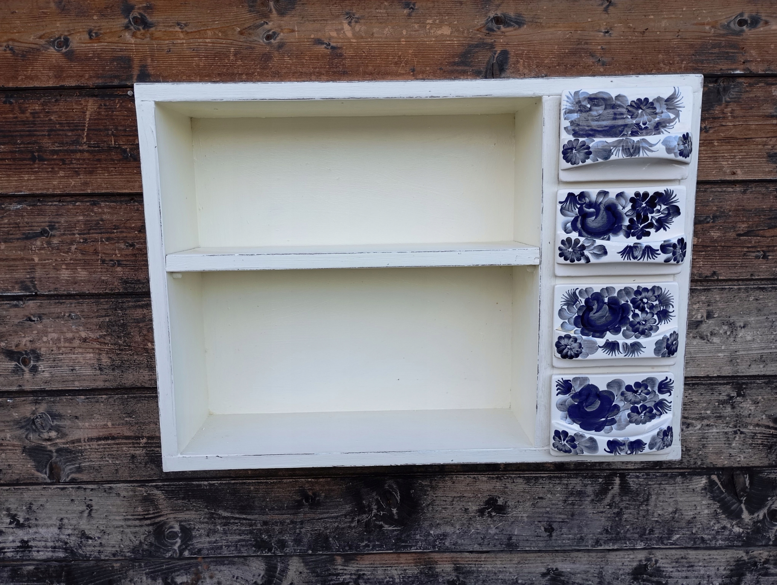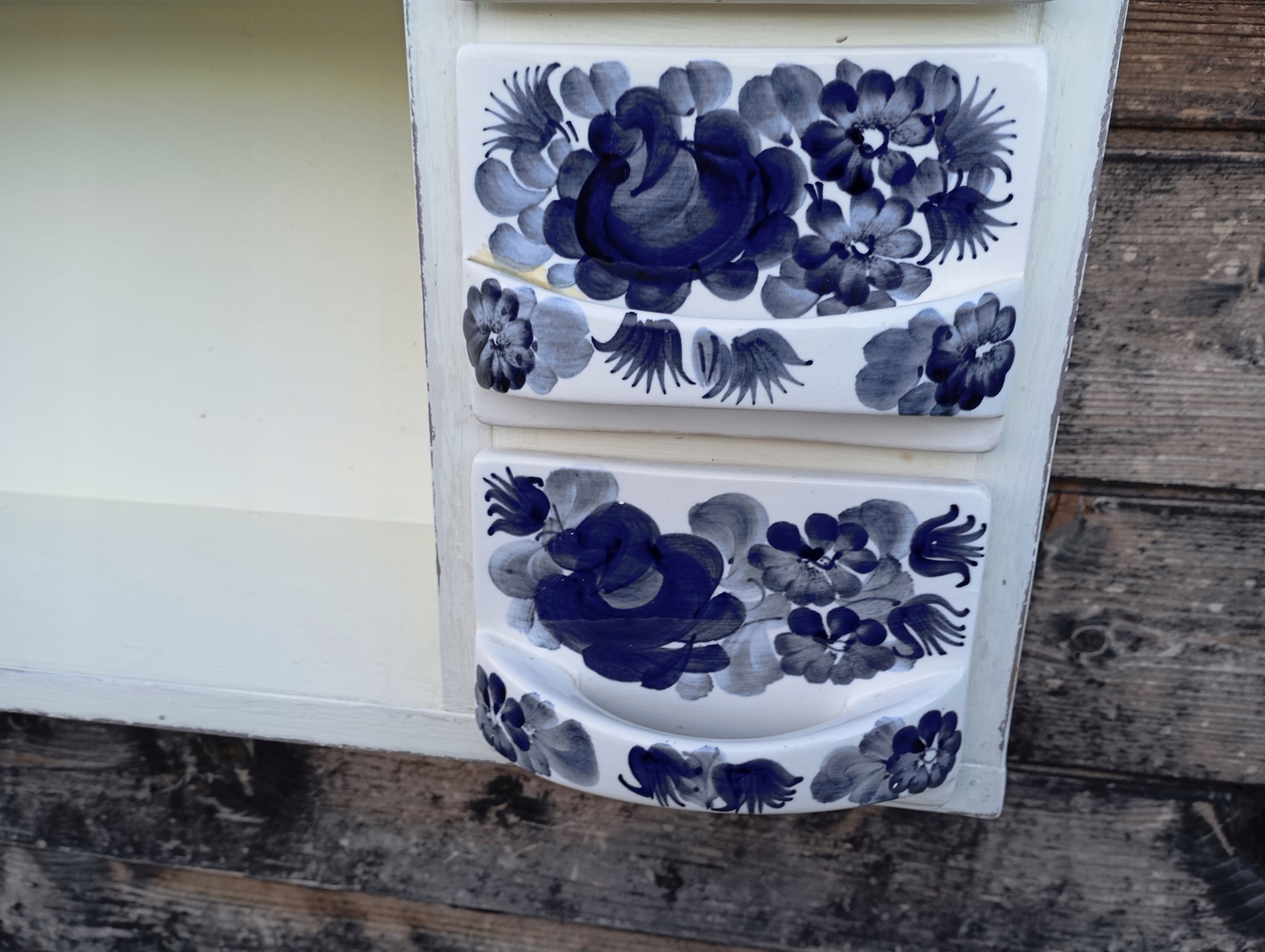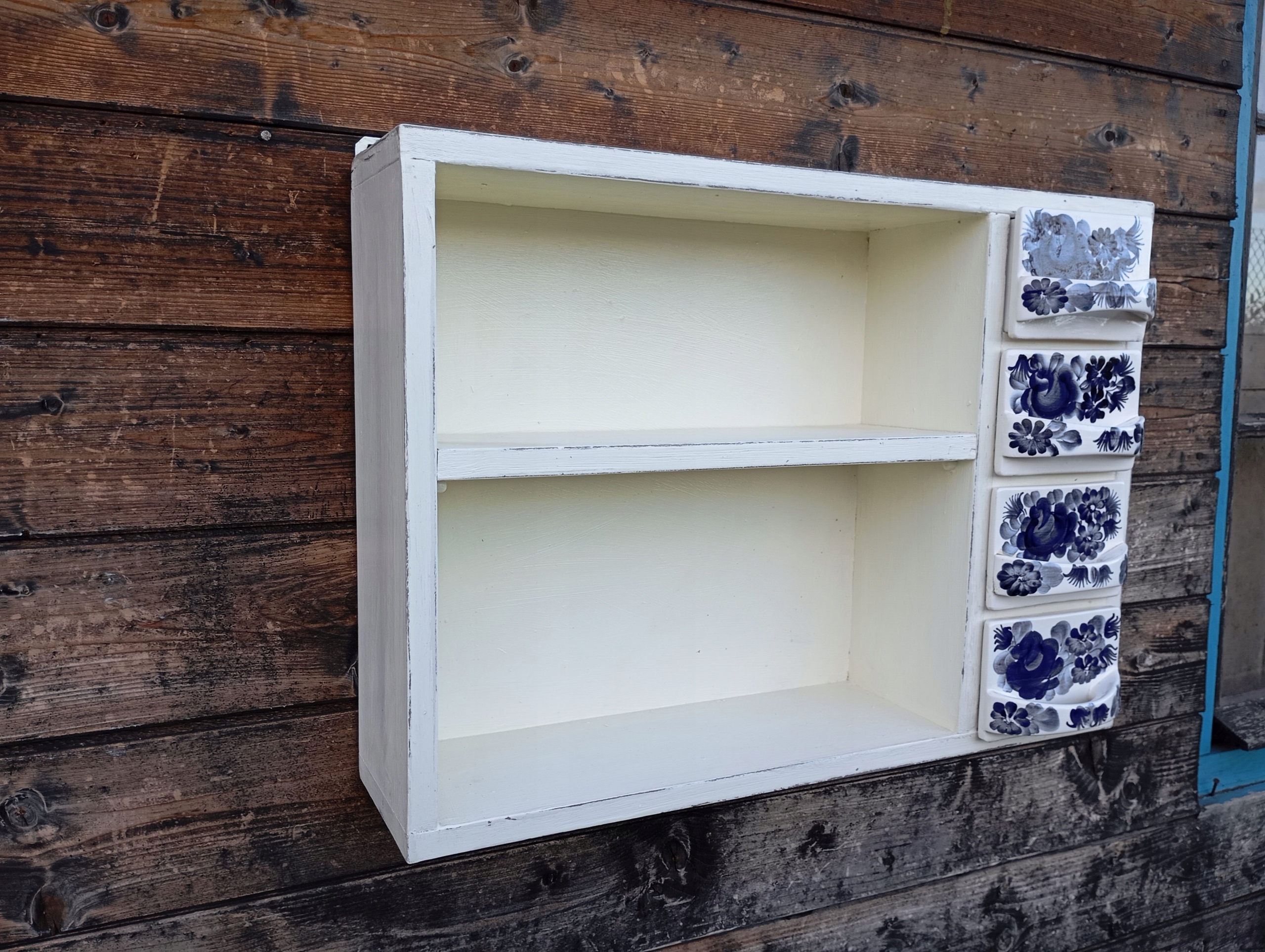 STARA MALOWANA PÓŁKA SZAFKA Z CERAMICZNYMI SZUFLADKAMI WŁOCŁAWEK