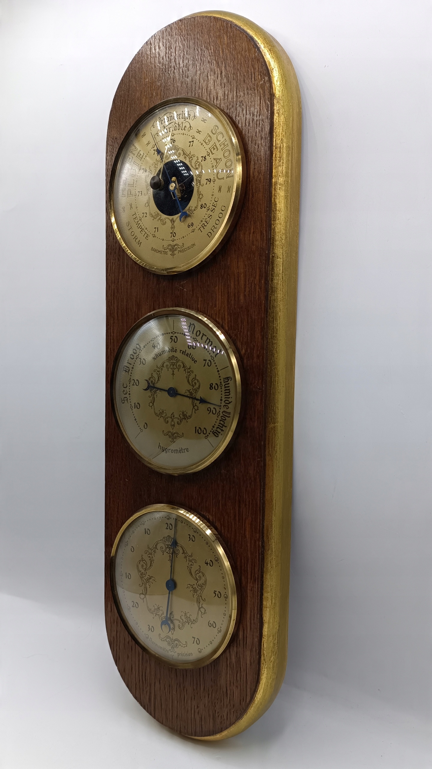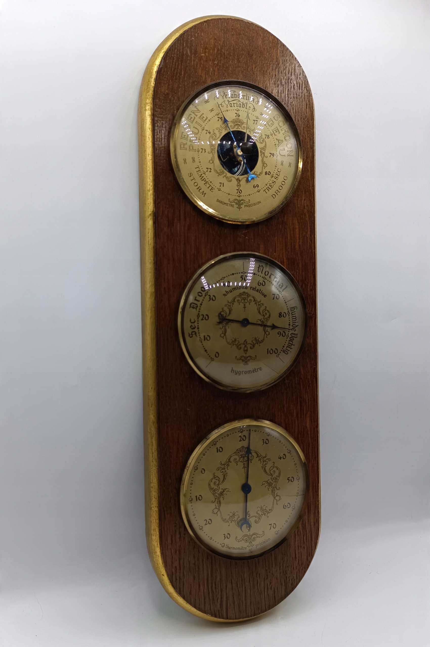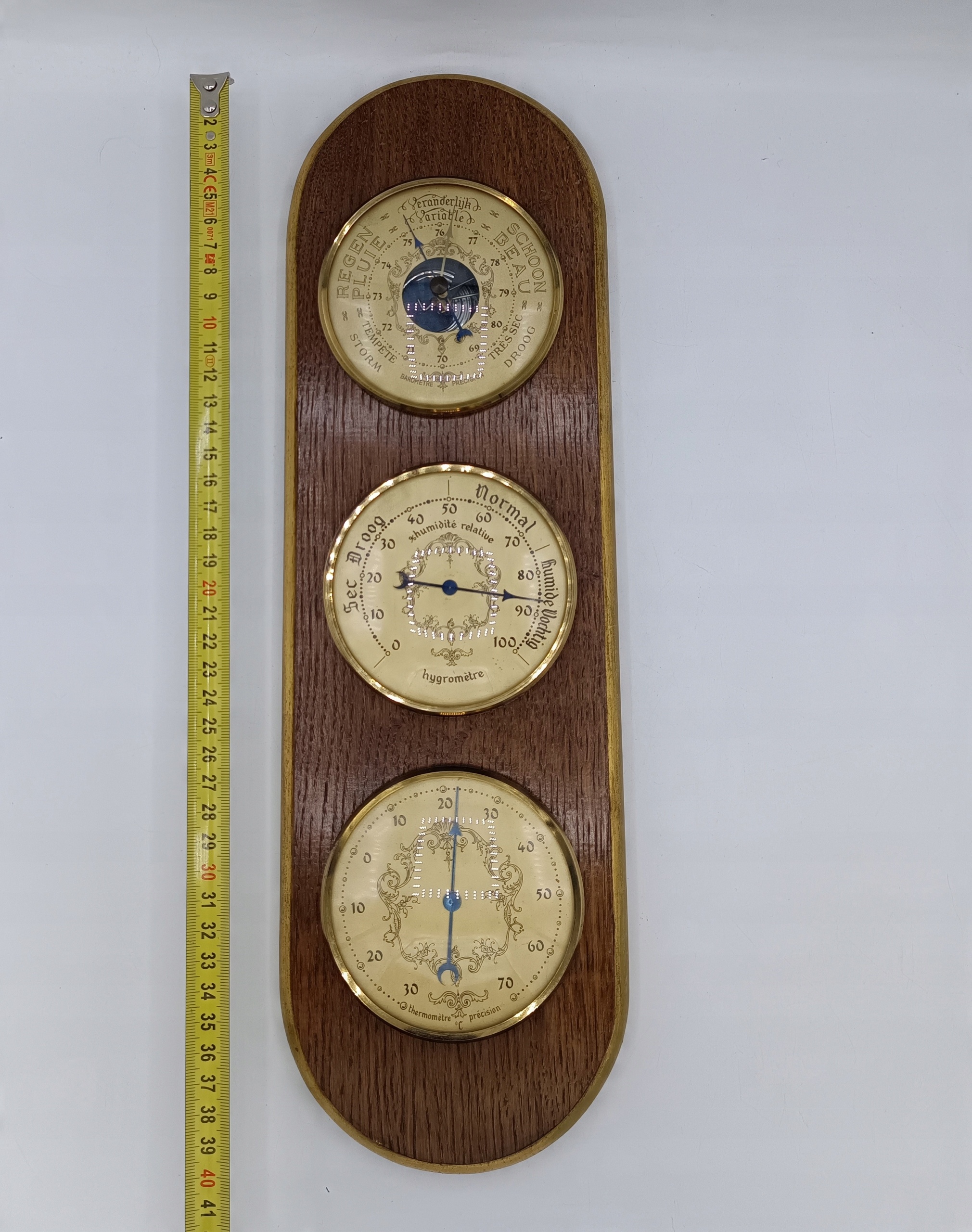 Old weather station - wood - barometer hygrometer thermometer - large 42cm