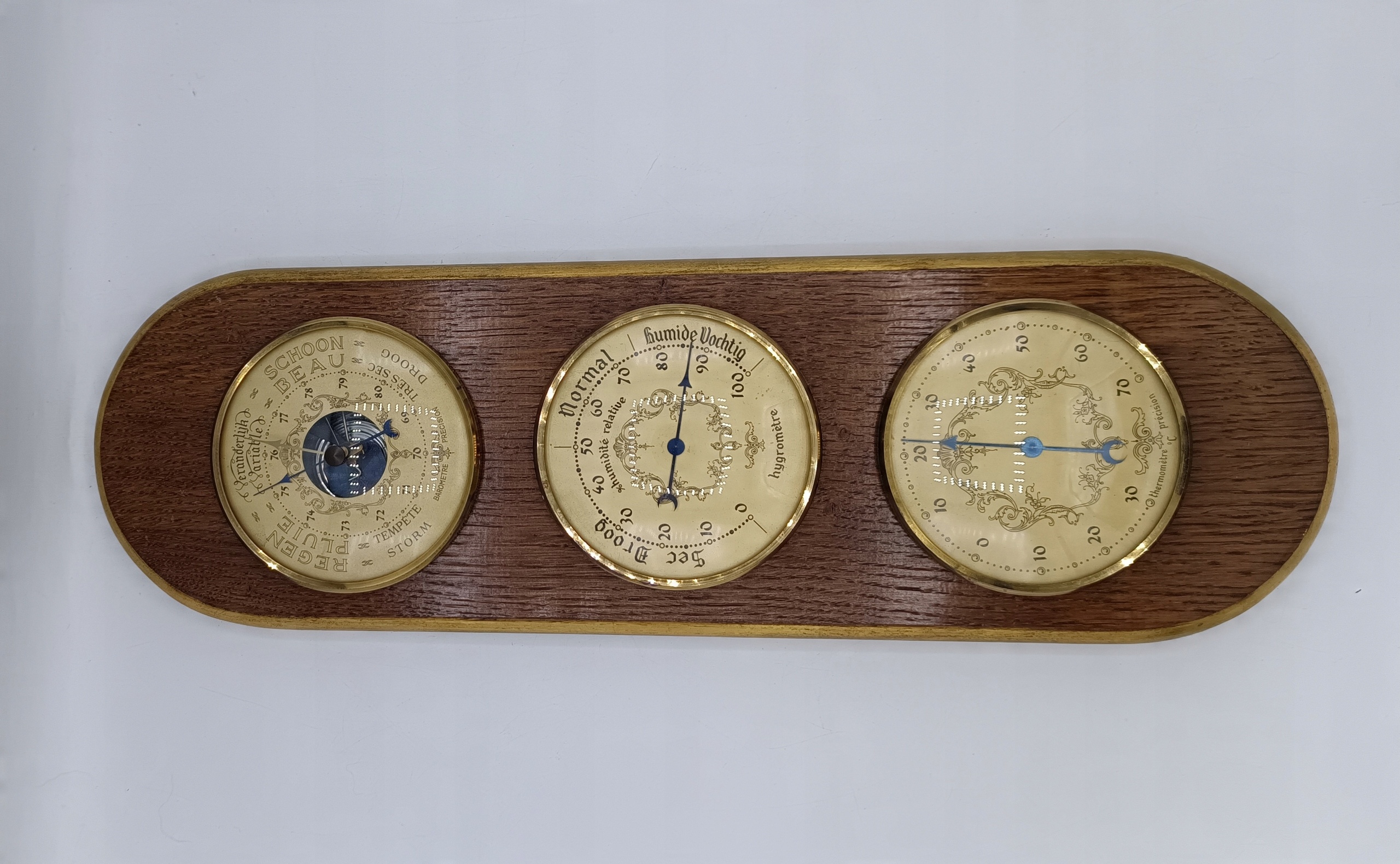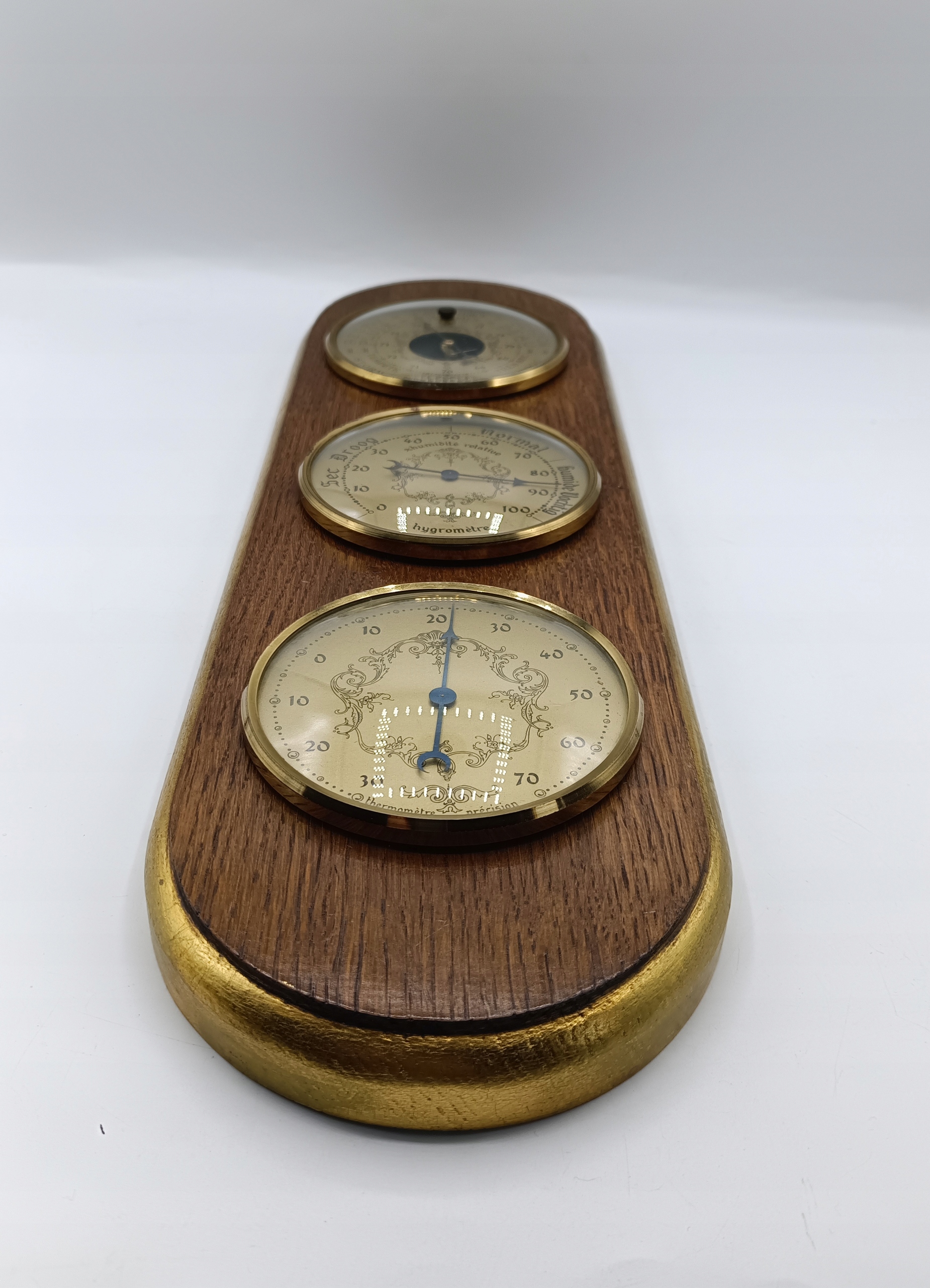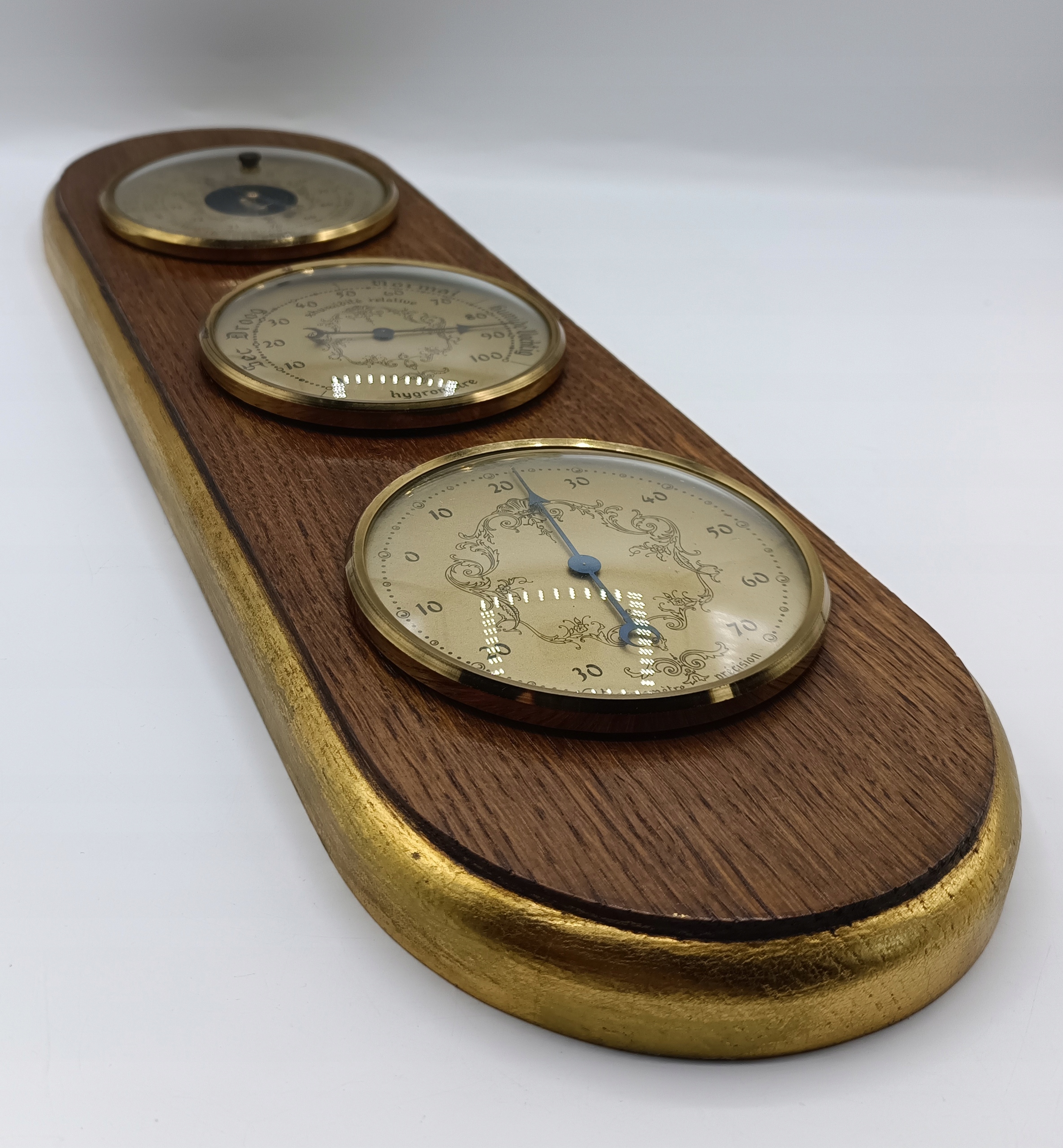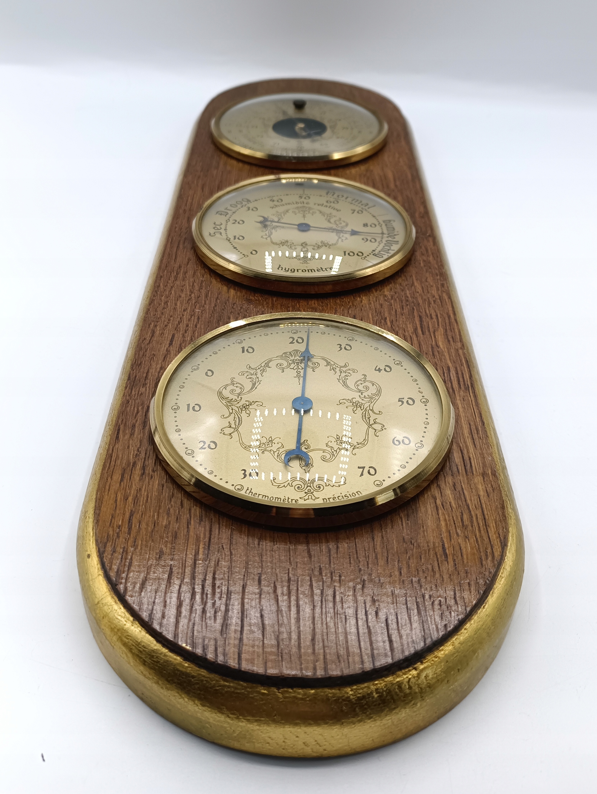 Old weather station - wood - barometer hygrometer thermometer - large 42cm