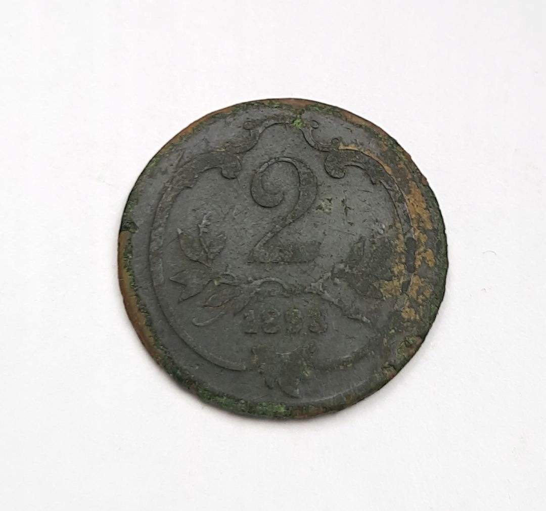 Старая коллекционная монета 2 Халера, вероятно, 1893 г., Австрия