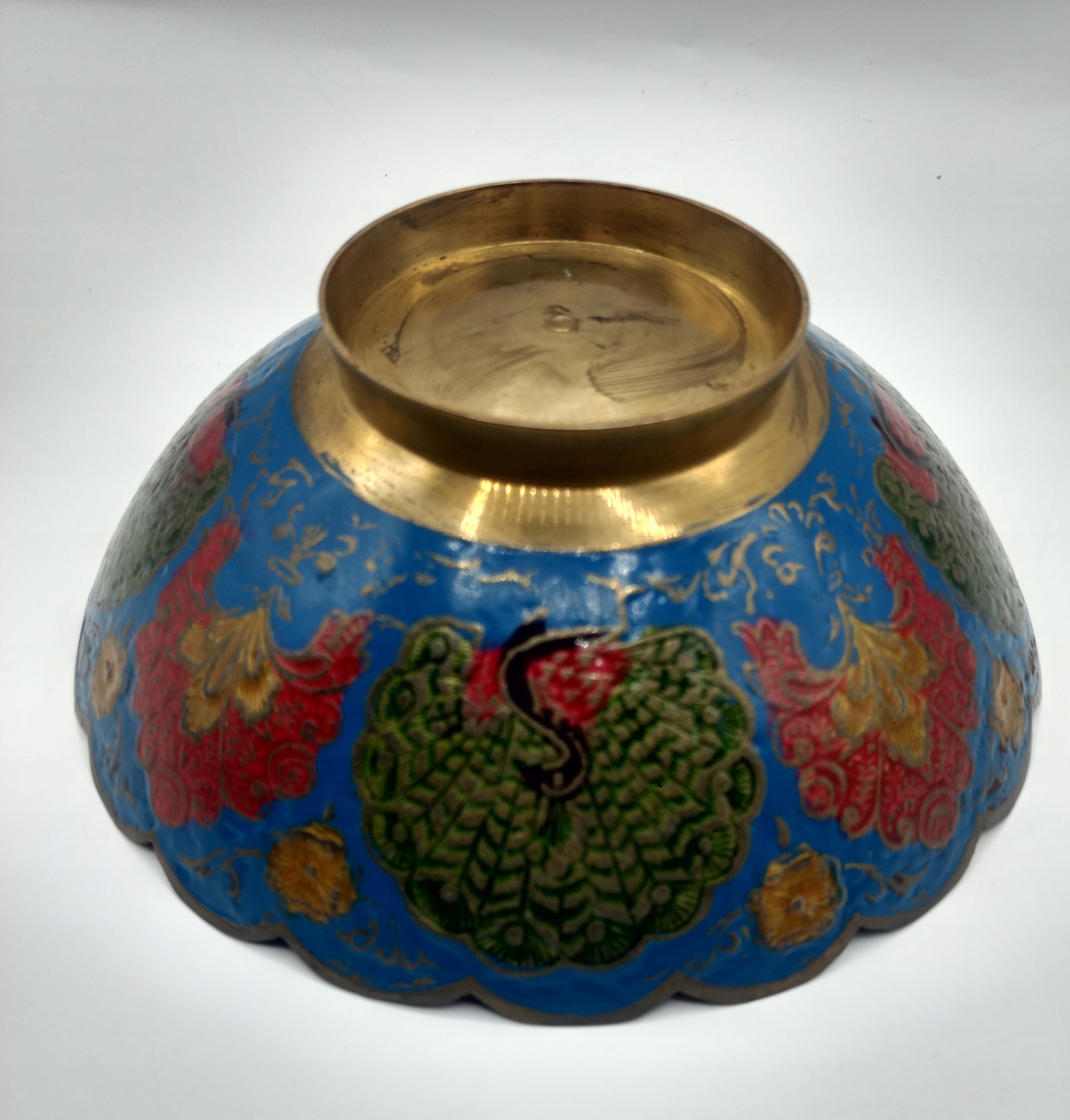 СТАРАЯ латунная чаша, КРАСИВЫЙ ПАВЛИН - птица!