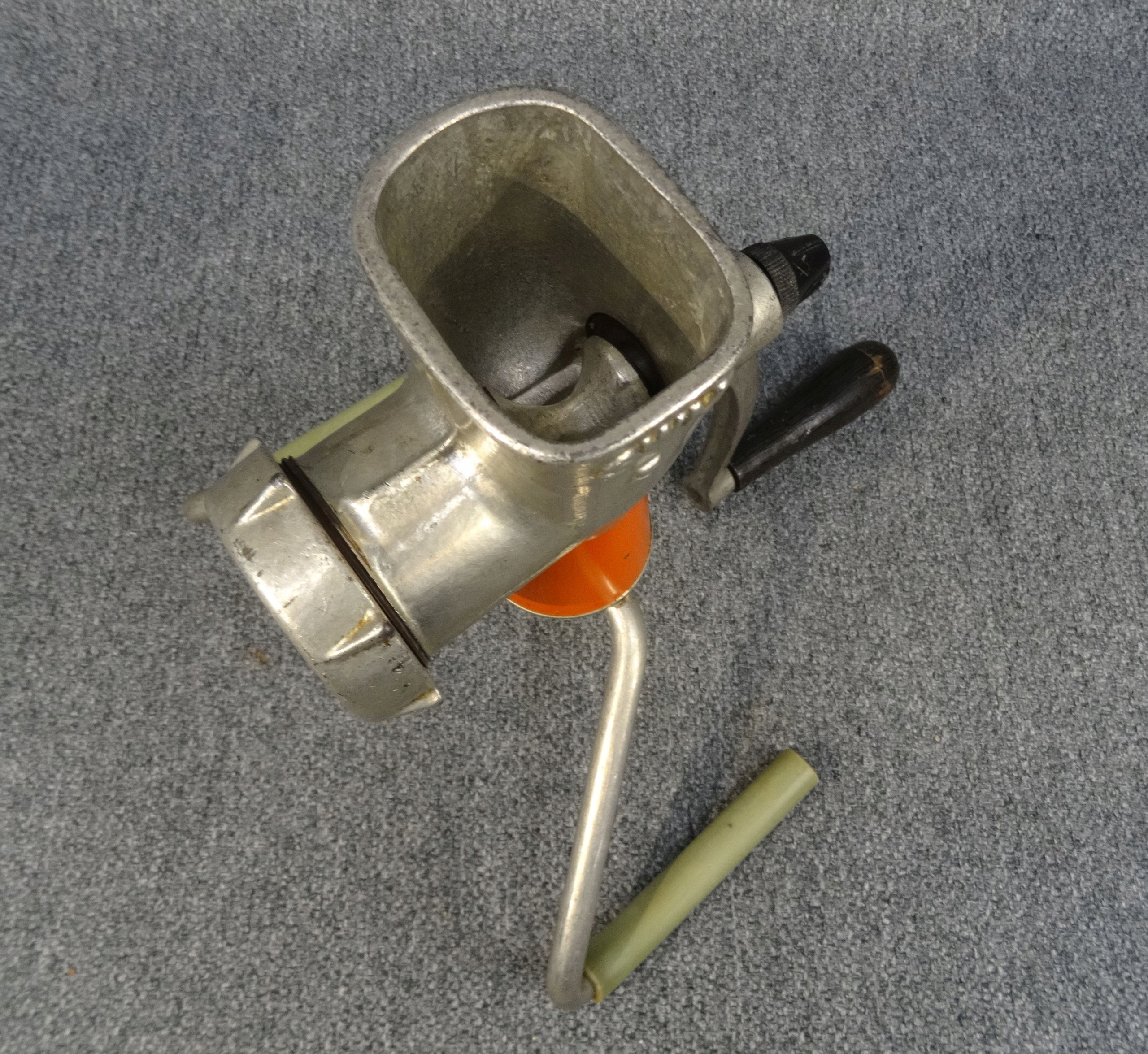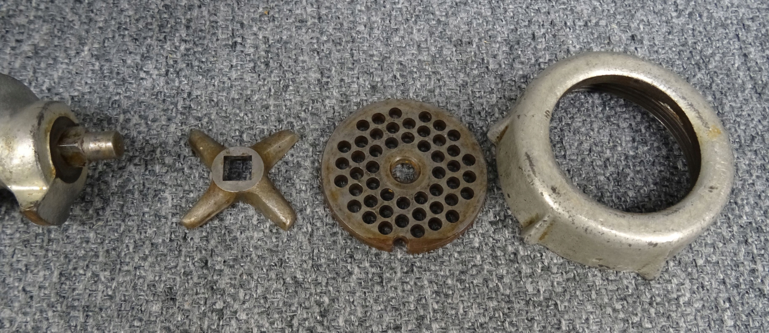 Старая МЯСОРУБКА - UNISETTE. Внутри станка имеется шуруп, нож и кольцевая пила.