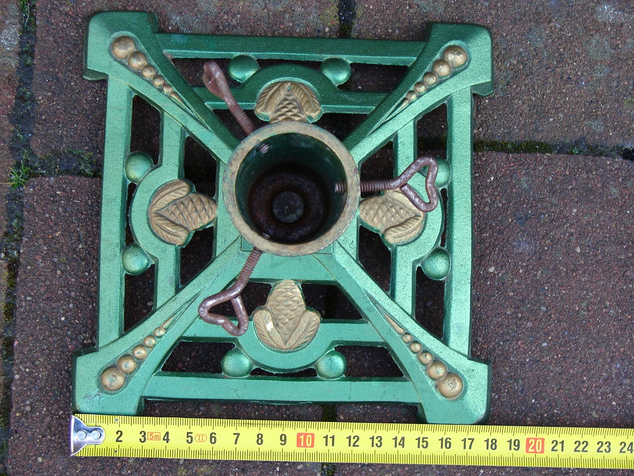 Старая немецкая подставка для елки из металла в декоративной форме.